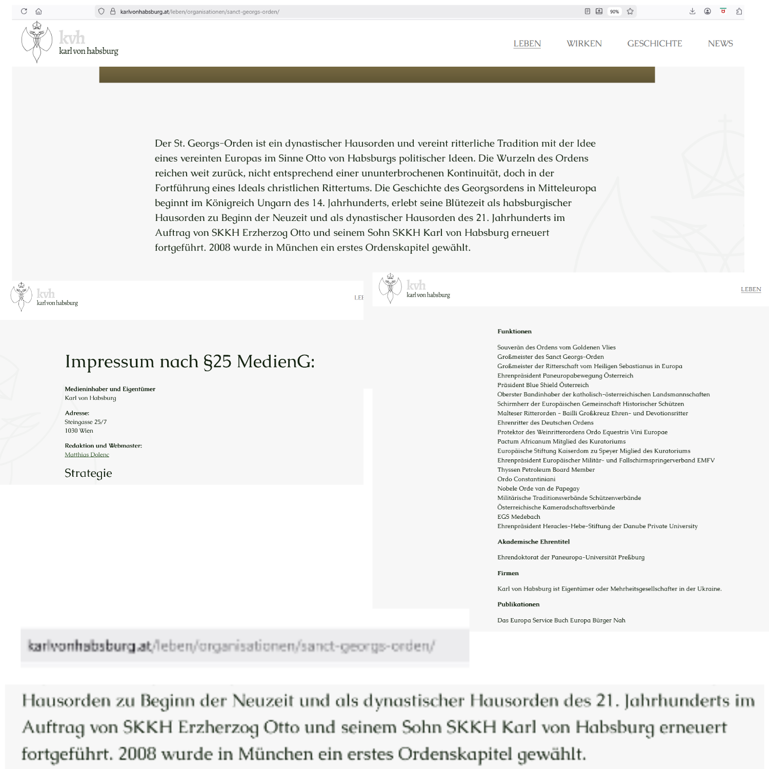 Gemäß Impressum der Website von Karl Habsburg ist es eine österreichische Website, beheimatet in der Steingasse 25 in 1030 Wien, dessen „Medieninhaber und Eigentümer“ Karl Habsburg ist, der ganz die österreichischen Gesetze respektierend und einhaltend seine Website „Karl von Habsburg“ und auf seiner Website „SKKH Karl von Habsburg“ —