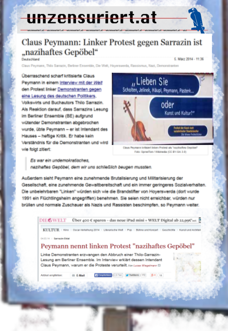 Vorgestern wurde hier über die Anstiftung zur Kunstzerstörung in Österreich von Österreich geschrieben. Anlaß war die Kunstzerstörung in Leibnitz, genauer die Einladung zur Kunstzerstörung von Österreich in Österreich. Und gestern durfte im Arse-Theatre, von dem geglaubt wurde, es sei längst schon geschlossen worden, bei freiem Eintritt einem Stück beigewohnt werden, das von der Kundschaft der österreichischen Qualitätszeitung „Der Standard“ aufgeführt wurde.