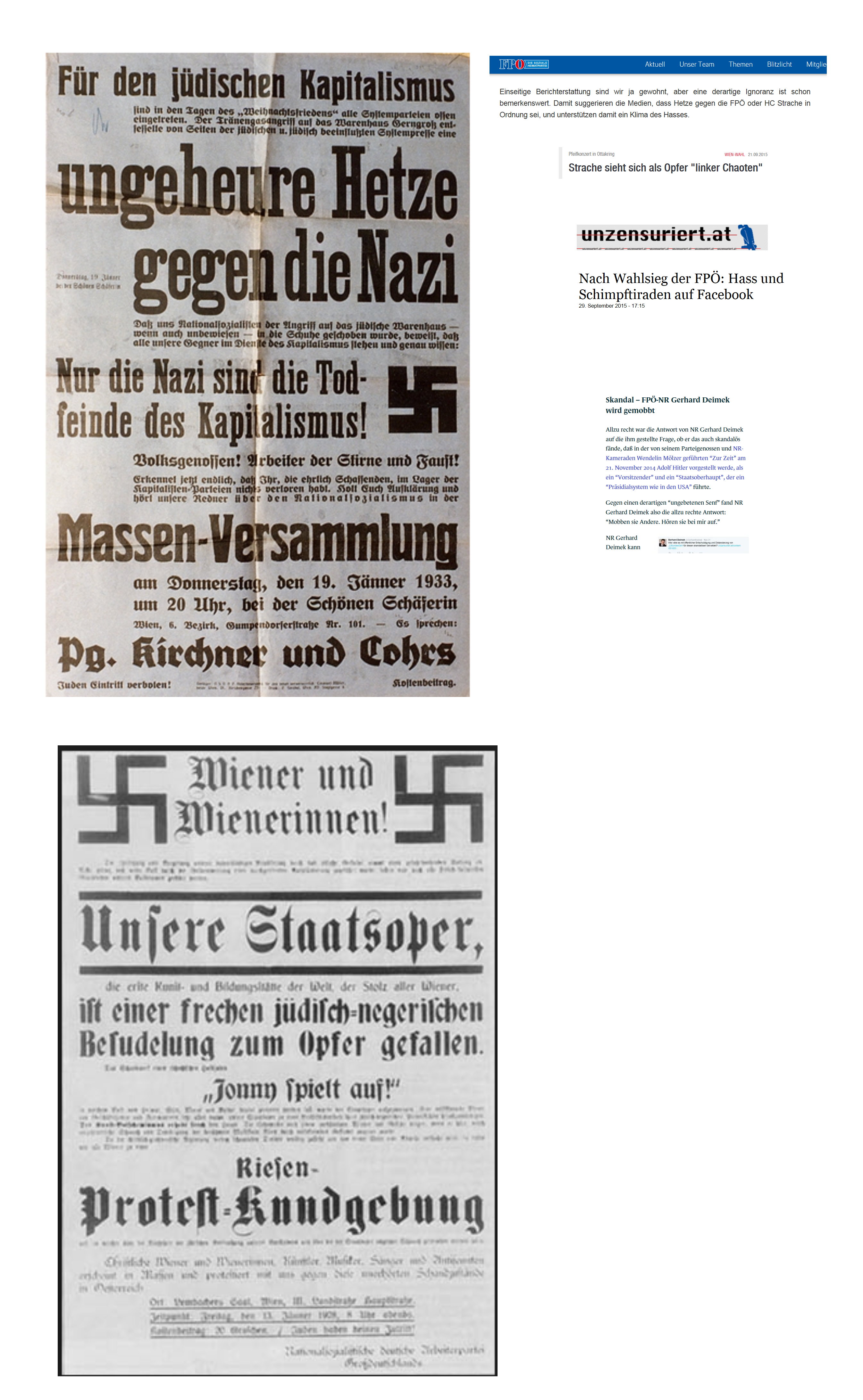 Dieser Einsatz von bald einhundert Jahre alten Kritikabwehrstrategien – geschenkt … Was aber viel schlimmer und grauslicher ist, ist die ständige Belästigung durch die FPÖ mit ebenso alten Ansichten, Meinungen. Gerade der aktuelle Winter-Fall zeigt das recht wieder auf, zweiundachtzig Jahre später muß in Österreich immer noch behandelt werden, was auf diesem Flugblatt mit „Juden Eintritt verboten“ … Und was 2015 auf freiheitlichen Seiten über „Neger“, ist auch nur eine Belästigung mit dem, was vor bald einhundert Jahren – wie das zweite Flugblatt über die „freche jüdisch-negerische…“ Ach, und immer „Opfersein“, auch das 2015 wie vor einhundert …