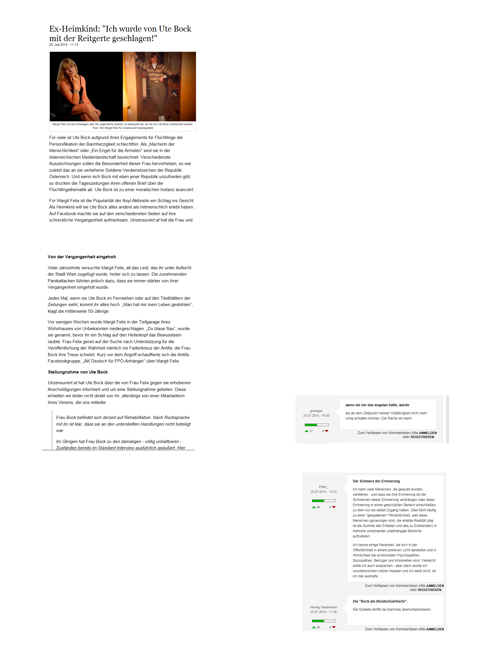 NS Eines belegt dieser Kommentar von FPÖ-Unzensuriert eindrücklich. FPÖ-Unzensuriert weiß um die Gefährlichkeit von Worten. Denn nicht umsonst stellt sie eine Verbindung her zwischen, wie in der Collage gelesen werden kann, der Echauffierung auf „AK Deutsch für FPÖ-Anhänger“ und dem Vorfall in der Tiefgarage. Die Echauffierung soll nämlich „kurz vor dem Angriff“ auf Margit Felix erfolgt sein. Mit diesem Wissen der FPÖ-Unzensuriert über die Gefährlichkeit und das Gemeingefährliche von Beiträgen erscheint der verantwortungslose Umgang der FPÖ-Unzensuriert mit Kommentaren noch einmal verantwortungsloser, es ist ein gemeingefährliches Agieren respektive Nicht-Agieren und Gewähren …