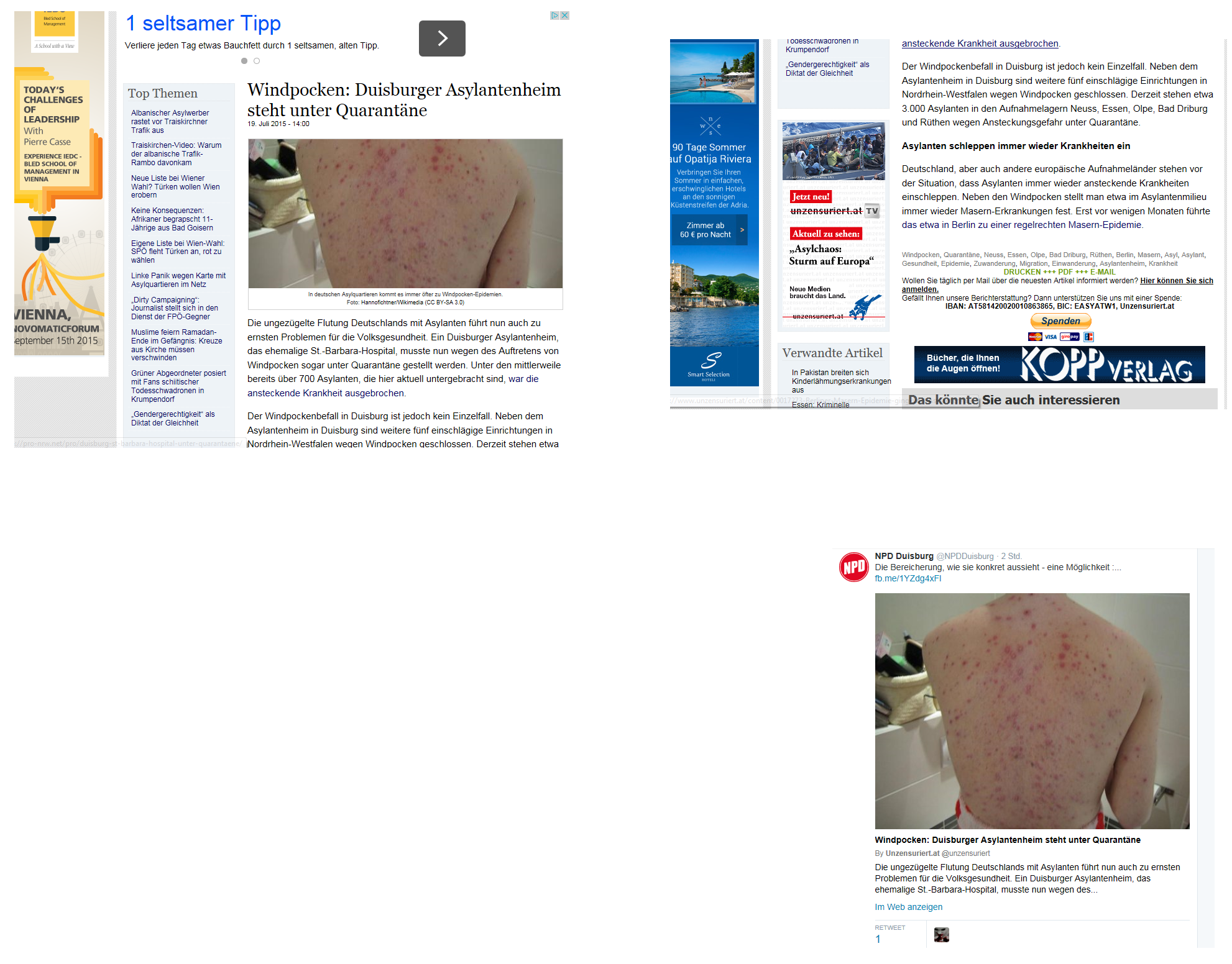 Wie die Collage zeigt, kaum schreibt die FPÖ-Unzensuriert etwas, schon verbreitet es die NPD in Deutschland …