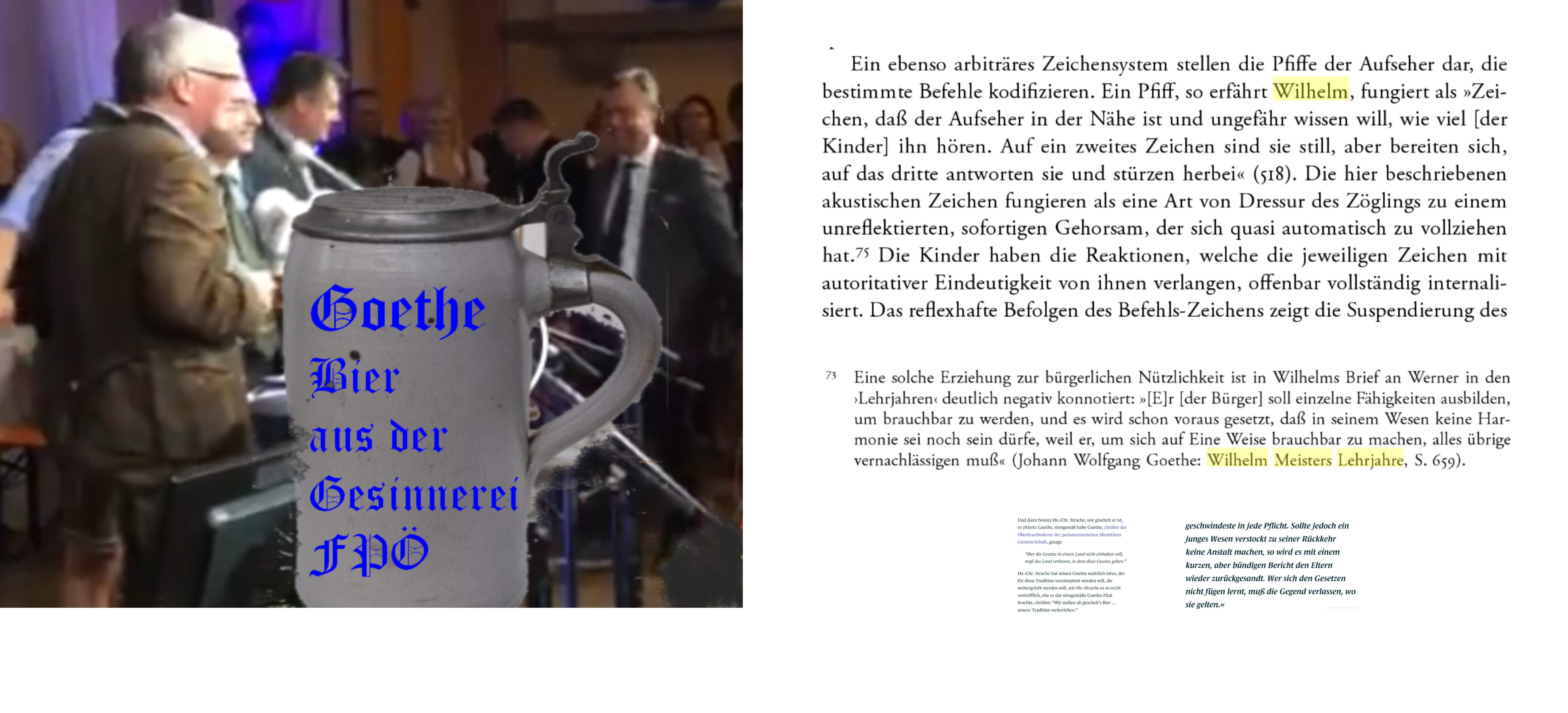 der für diese Tradition vereinnahmt werden will, die weitergelebt werden will, wie He.-Chr. Strache es so recht vortrefflich, ehe er das sinngemäße Goethe-Zitat brachte, chrähte: „Wir wollen ah gescheit’s Bier … unsere Tradition weiterleben.“