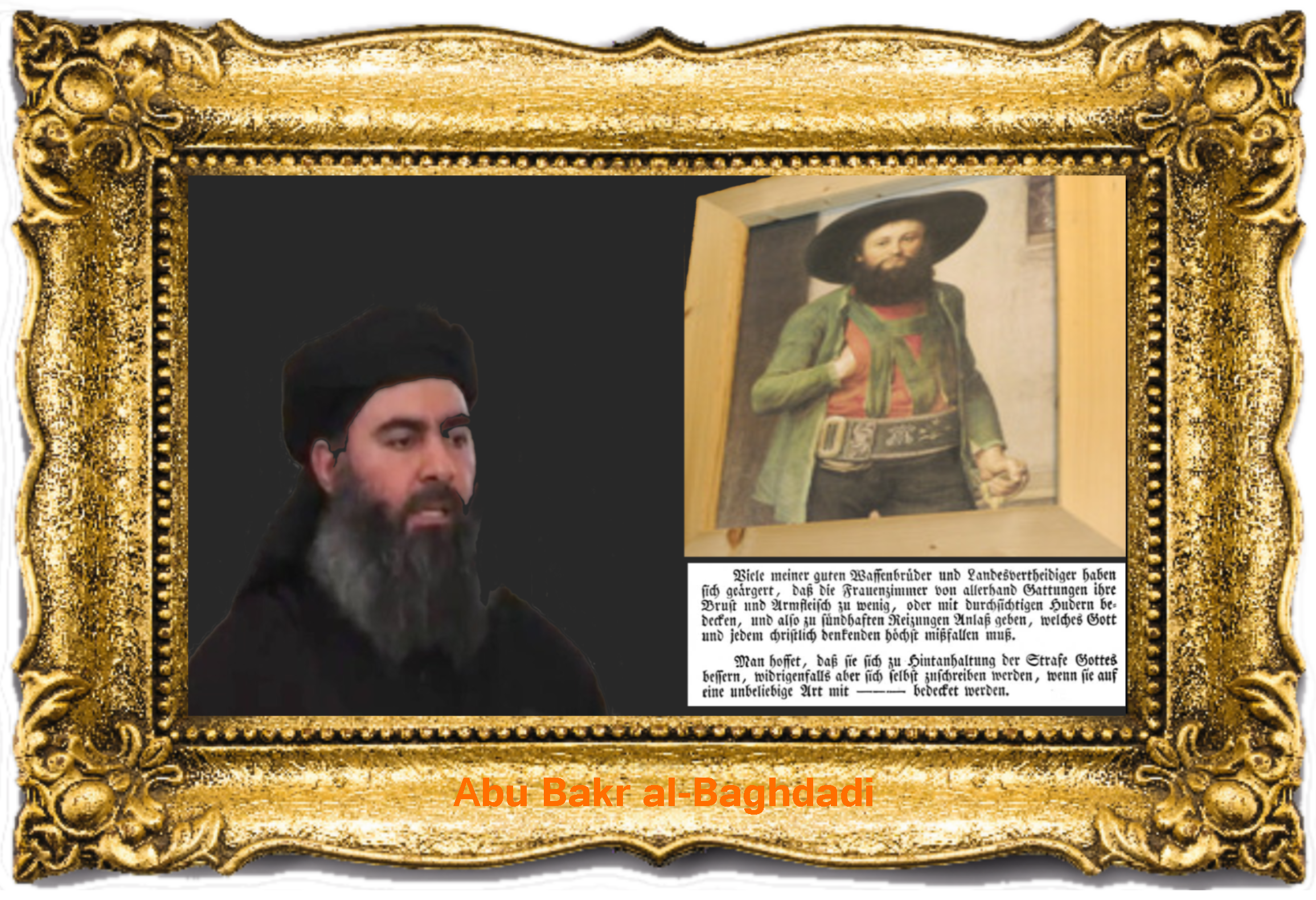 Eines Tages sei er, so also beginnt der eben erst Zurückgekehrte zu erzählen, mit anderen jungen Männern und Frauen zum Kalifen gerufen worden, der ihnen dafür danken wollte, dem Ruf Allahs gefolgt zu sein, Europa verlassen zu haben, um ihm das Schwert des Glaubens gegen die Unwissenden zu führen. Während er sich die aufwühlende Rede von Abu Bakr al-Baghdadi anhört, sieht er plötzlich an der Wand hinter dem Kalifen ein goldgerahmtes Bild, von dem er seine Blicke nicht mehr abwenden kann. Abu Bakr al-Baghdadi in seiner Allwissenheit bemerkt dies, unterbricht seine Rede, um ihn zu fragen, weshalb er dem Bild mehr Aufmerksamkeit schenkt als seiner Rede. Es ist die Tracht, Erhabener, Wissender unter den Wissenden, Erleuchter der Unwissenden, die ihn an seine Heimat erinnert, auch wenn er nicht weiß, wer dieser Mann neben dem Hochwürdigen ist. Da lacht Abu Bakr al-Baghdadi freundlich: Norbert Hofer ist das. Ein Mann, der das Land, aus dem Du kommst, führen wird, so befiehlt es Allah. Und mit dem freundlichsten Gesicht, das ihm je ein Mensch machte, bittet ihn der Kalif, er möge sich zu ihm setzen und zieht aus seiner Tasche ein Papier, das er sorgfältig auf dem Tisch entfaltet, sanft glattstreicht und ihn bedeutet, es zu lesen. Während der Rückkehrer den Zeitungsausschnitt liest, lobt Abu Bakr al-Baghdadi Norbert Hofer, spricht davon, Europa ist nicht verloren, wenn es solche tapferen und dem Herrn ehrentreu ergebene Männer gibt, Männer wie Norbert Hofer sind die Hoffnung, die Rettung und das Heil Europas. Der Kalif steht mit einem Male auf, geht auf das goldgerahmte Bild zu, das er zum Zeichen seines Willens zur Ökumene hat anfertigen lassen. Um zu belegen, daß Norbert Hofer sein Lob verdient, liest er dessen Erlaß im Allah preisenden Gebetston :