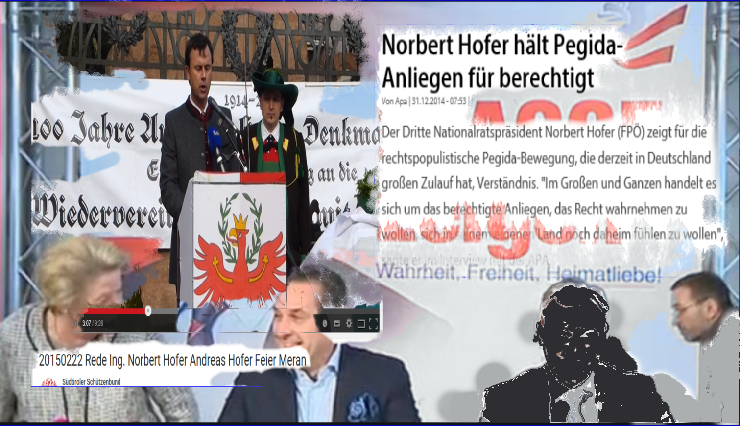 In Südtirol probte im letzten Jahr also NR Präsident III Norbert Hofer eine Bundespräsidentenrede, aus der hier ein paar Satzfetzen vor allem jene des recht hohen Tons zitiert werden, bar jedweder politischer Heutigkeit, aber reich an Kenntlichkeit: