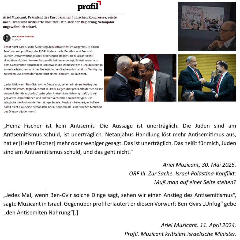 Beispielhaft auch dies von Ariel Muzicant am 30. Mai 2025 im öffentlich-rechtlichen Rundfunk: