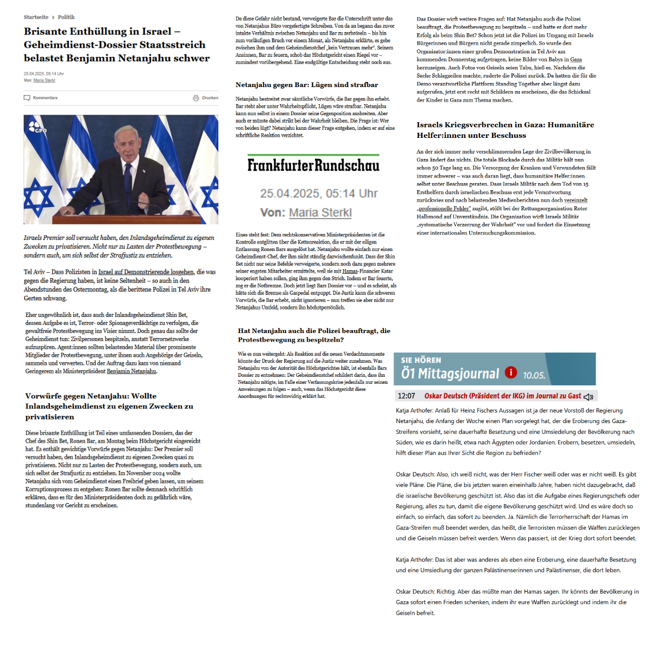 Am 10. Mai 2025 veröffentlicht „The Guardian“ die Aussagen von Joseph Borell zu dem, was in Gaza passiert, und ebenfalls am 10. Mai 2025 veröffentlicht zur Mittagszeit der öffentlich-rechtliche Rundfunk Österreichs das Interview mit Oskar Deutsch —