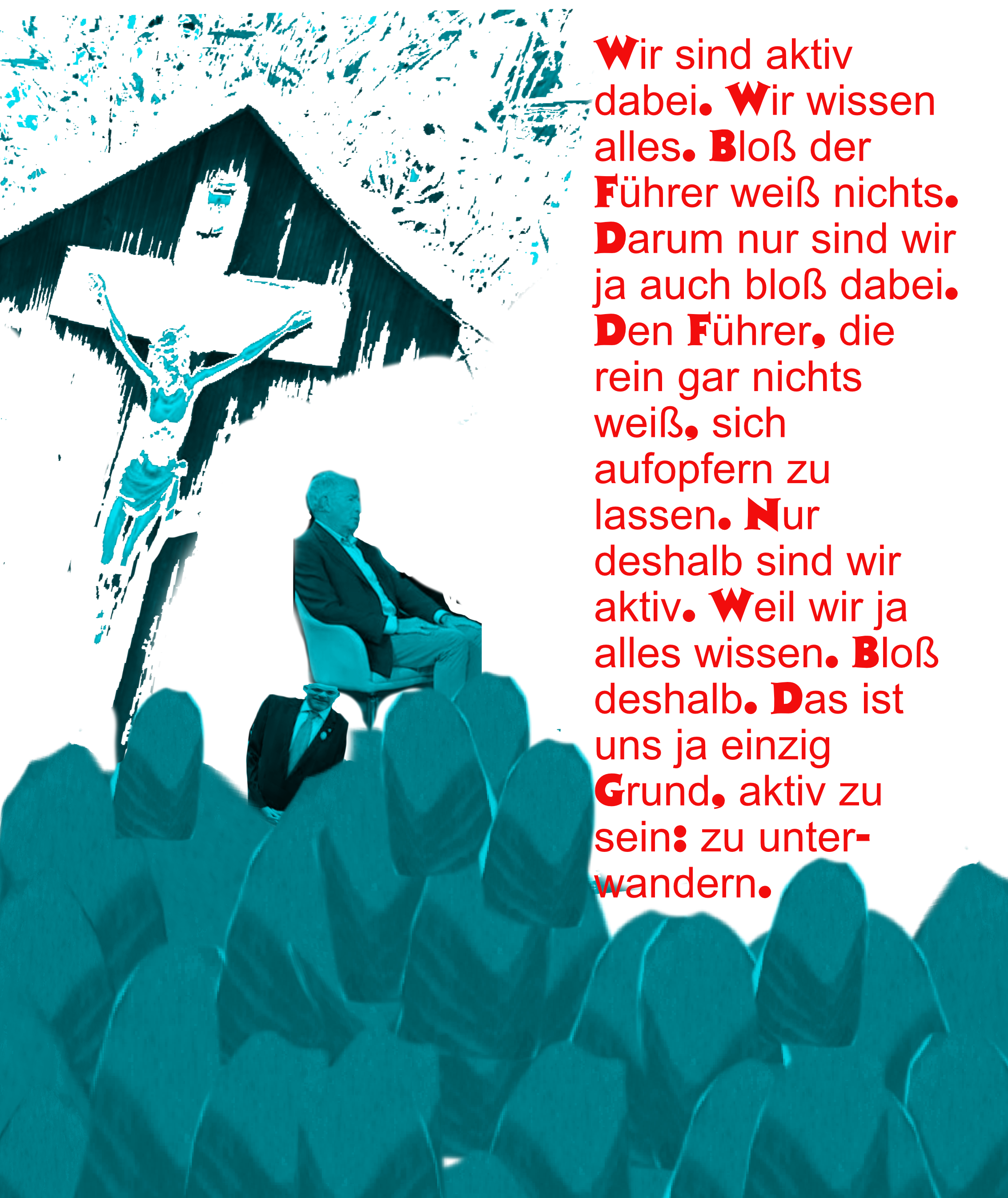 Manche werden vielleicht meinen, ob denn eine Unterwanderung je erfolgreich sein kann. Hat nicht eben Peter Sichrovsky, im Erinnerungsnovember 18, selbstkritisch im Fernsehen vom Scheitern gesprochen. Da ist er zu selbstkritisch. Immerhin hat der „Parteiführer“ bis zu seinem Tod nichts davon gewußt, daß er, Sichrovsky, zur „Unterwanderung“ nur … Das ist doch eine Unterwanderungserfolgsgeschichte. Spätestens seit dem Bericht in einer ebenfalls Qualitätszeitung wußten das alle, nur einer nicht, der Führer …