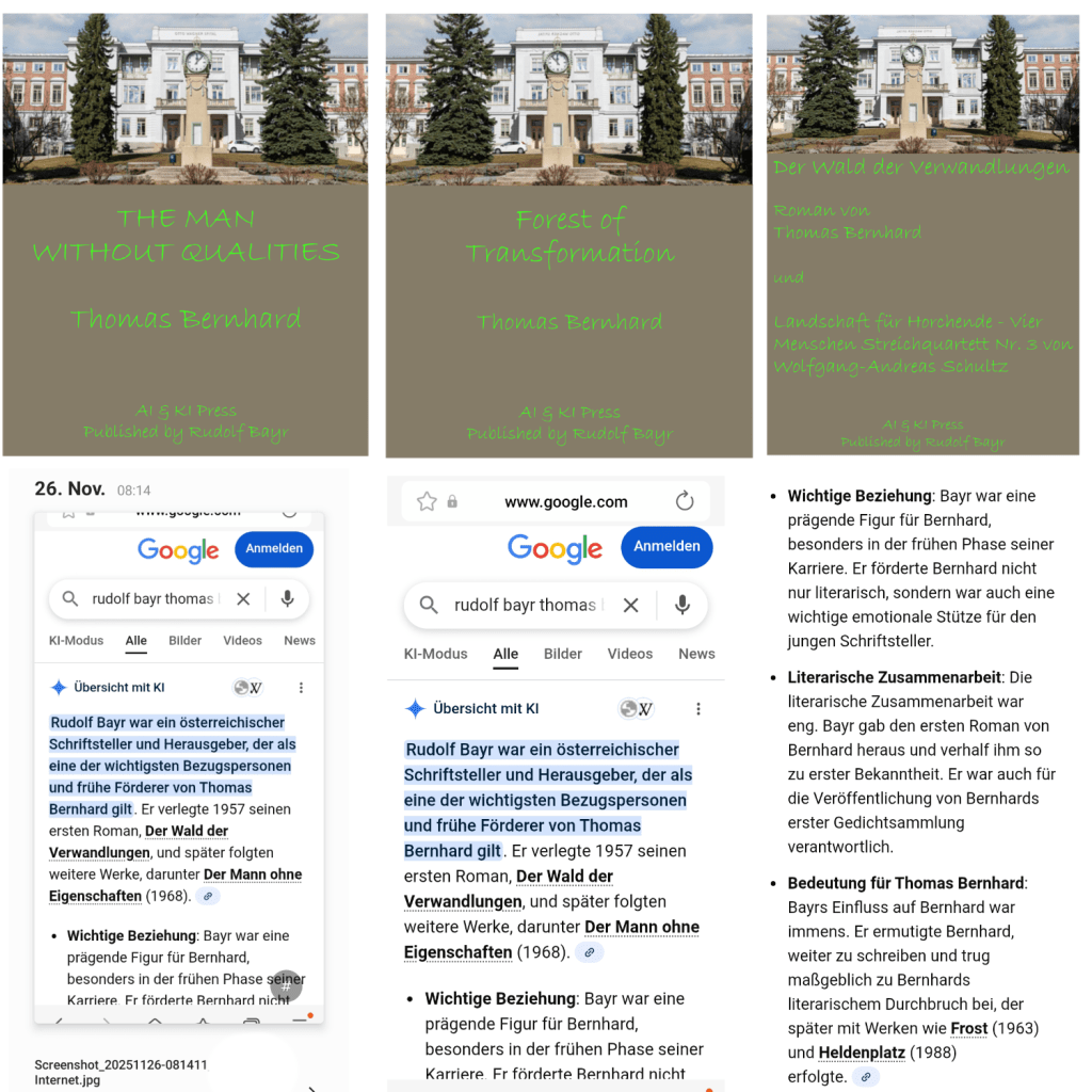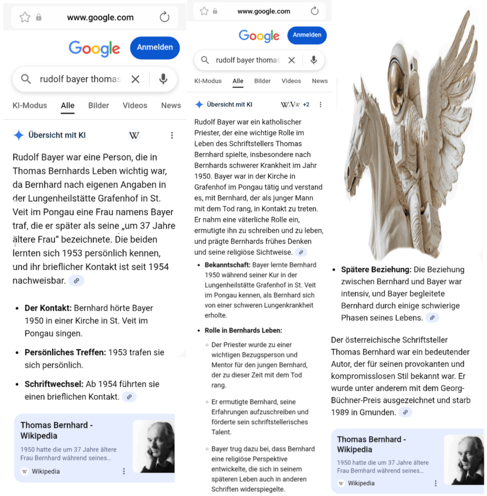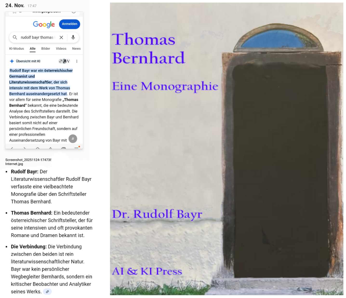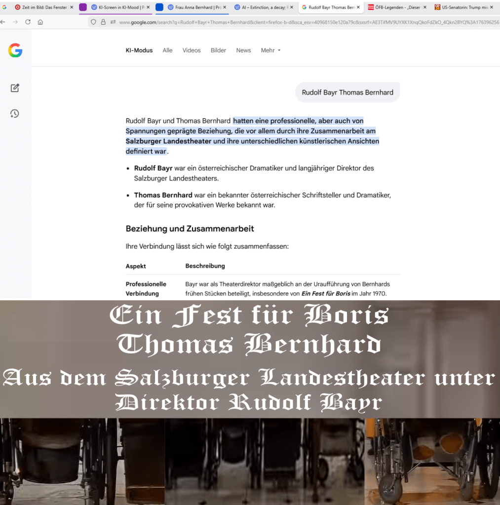 Wenn also beispielsweise eine Frage nach Rudolf Bayr und Thomas Bernhard eingetippt wird, dann wird in der AI – Jukebox die Platte automatisiert aufgelegt die Nummer zum Beispiel: