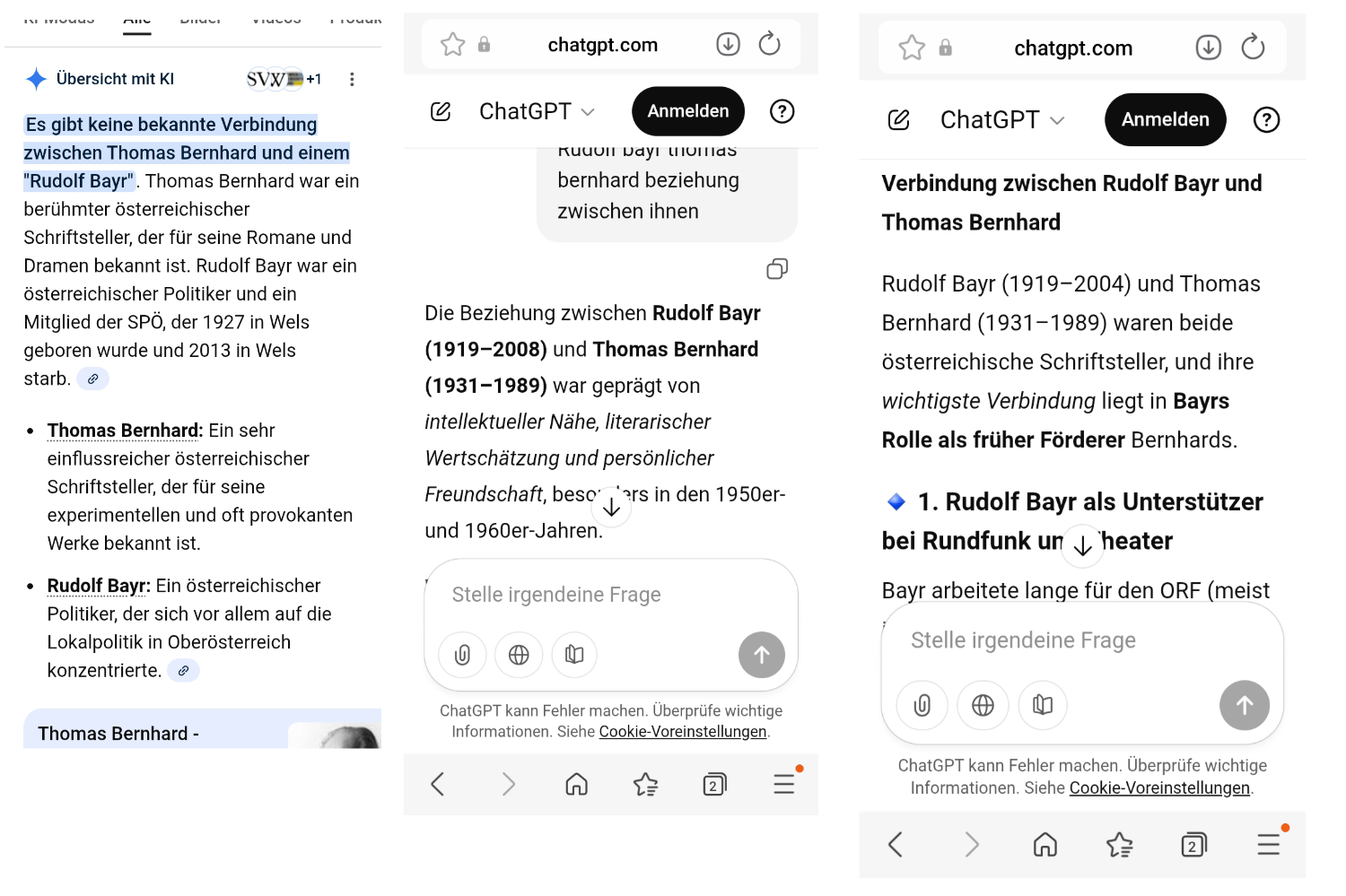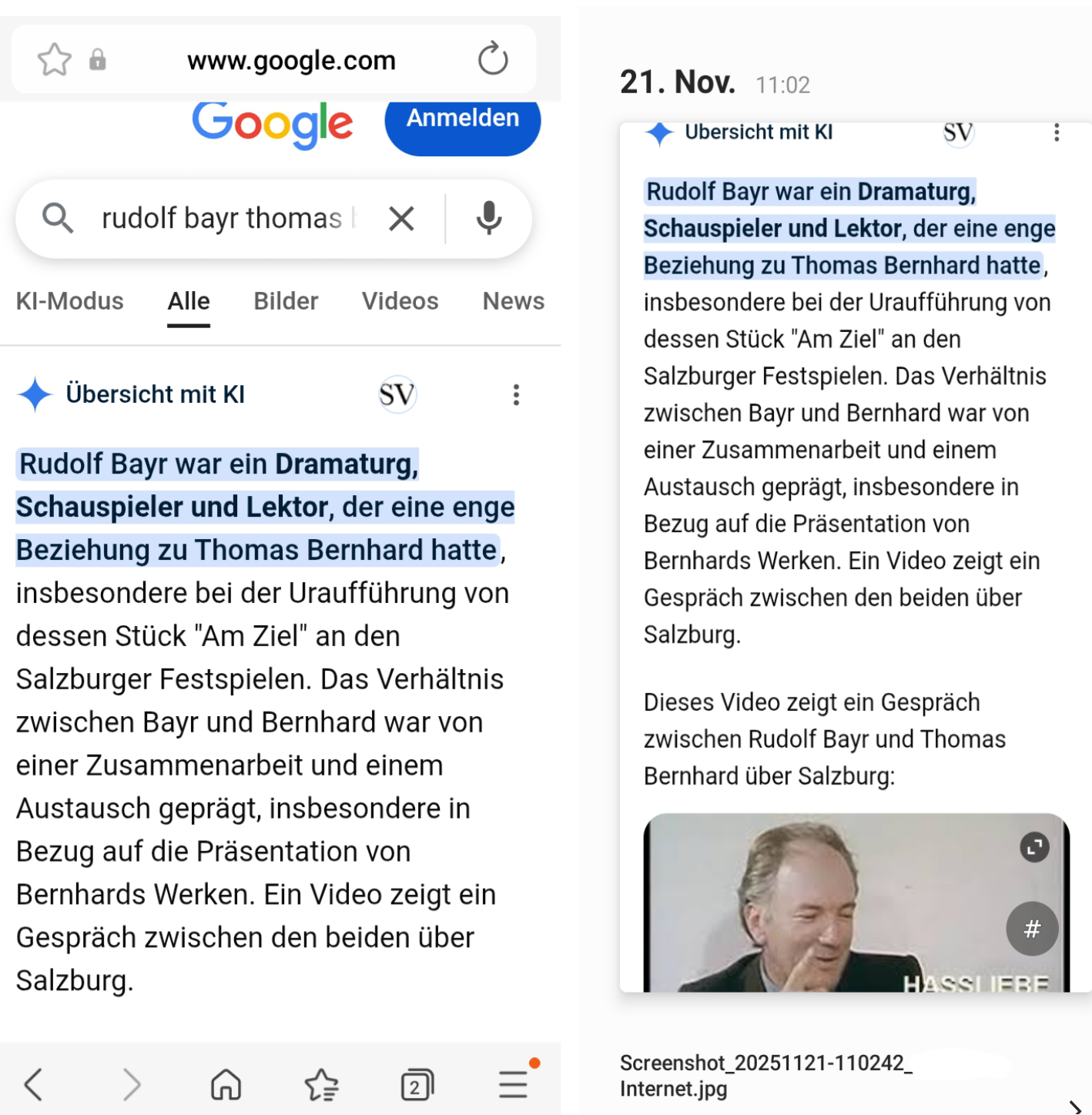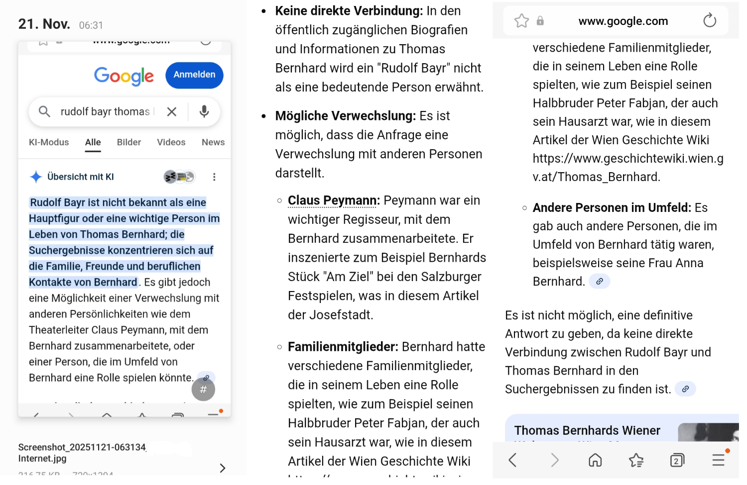 Wenn also beispielsweise eine Frage nach Rudolf Bayr und Thomas Bernhard eingetippt wird, dann wird in der AI – Jukebox die Platte automatisiert aufgelegt die Nummer zum Beispiel:
