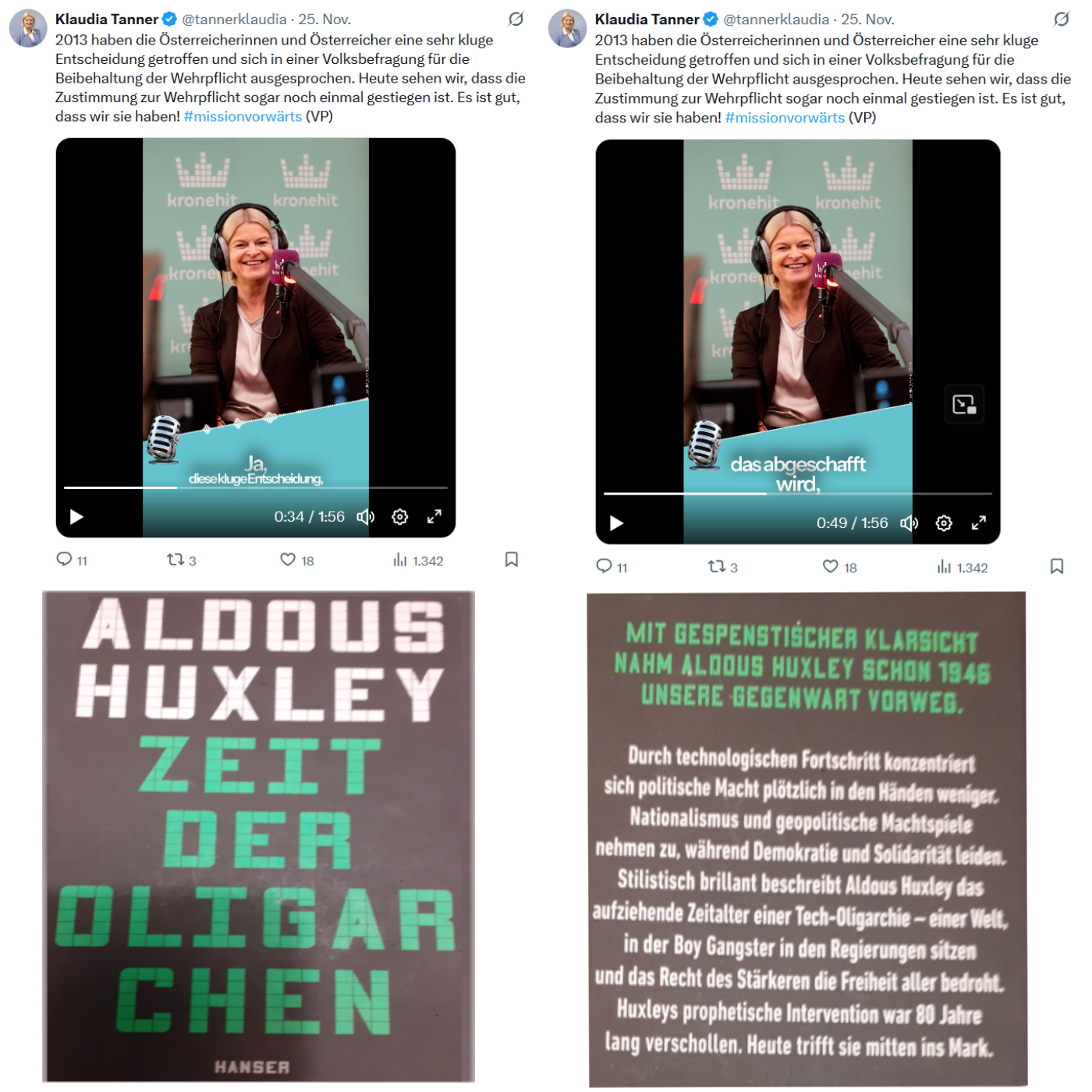 das in diesem Jahr mit dem heurigen November der tannerischen Klugheitsfeier in deutscher Sprache unter dem Titel „Zeit der Oligarchen“ veröffentlicht wurde … Dieses Kapitel soll aber nur das Denken von Aldous Huxley über die Wehrpflicht in Zitaten enthalten.