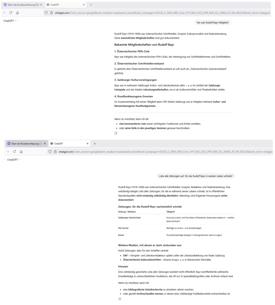 Ausgelost von „AI Raffle“ allerdings ein „österreichischer Politiker und ein Mitglied der SPÖ namens Rudolf Bayr, „der 1927 in Wels geboren wurde und 2013 in Wels starb“, „der sich vor allem auf die Lokalpolitik in Oberösterreich konzentrierte“. Aber:
