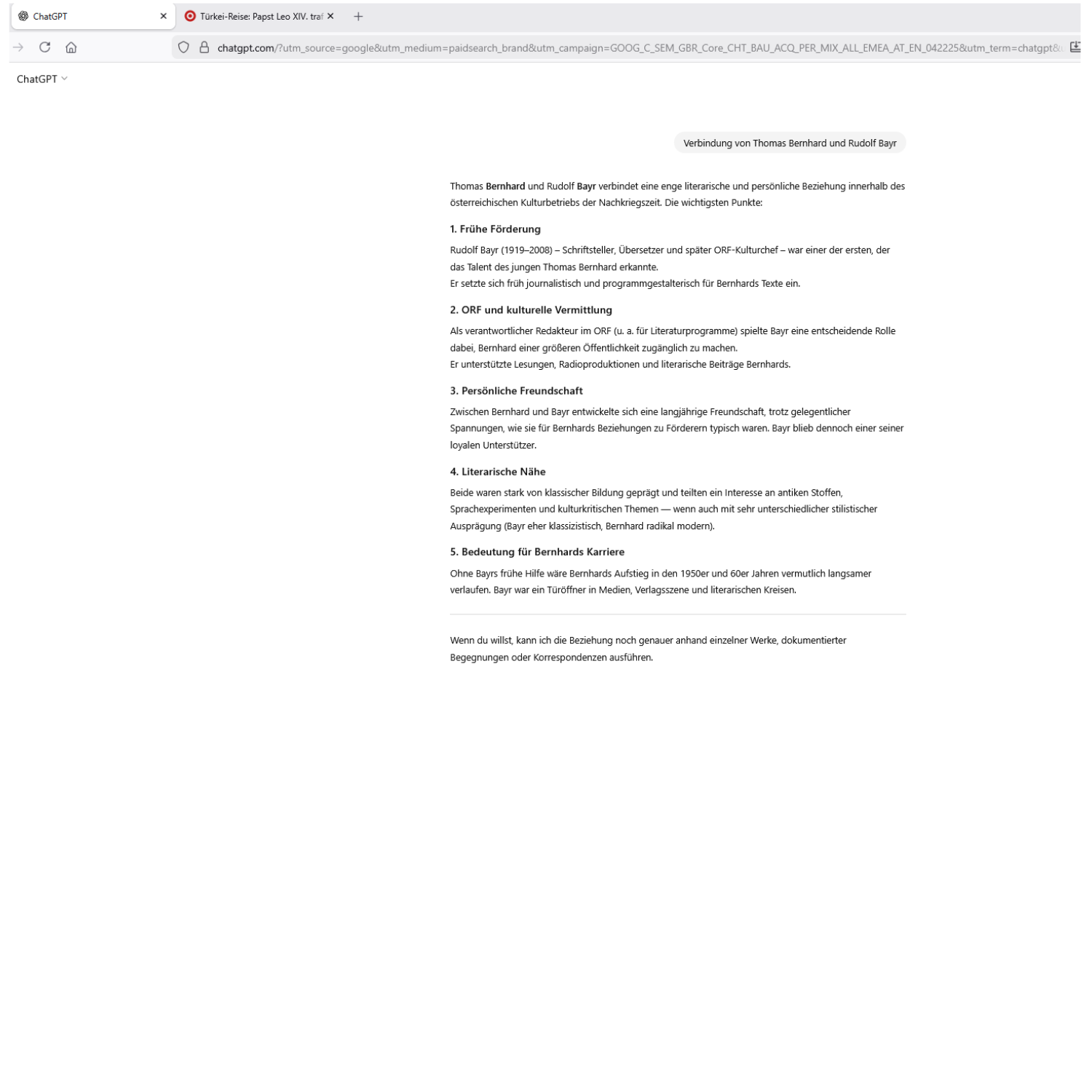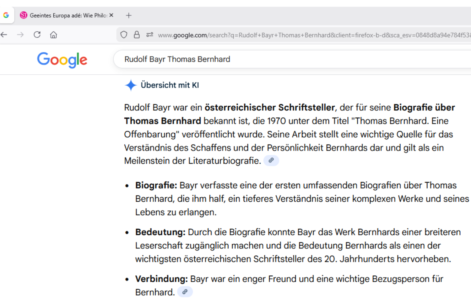 Es gibt keine bekannte Verbindung zwischen Thomas Bernhard und einem „Rudolf Bayr“.