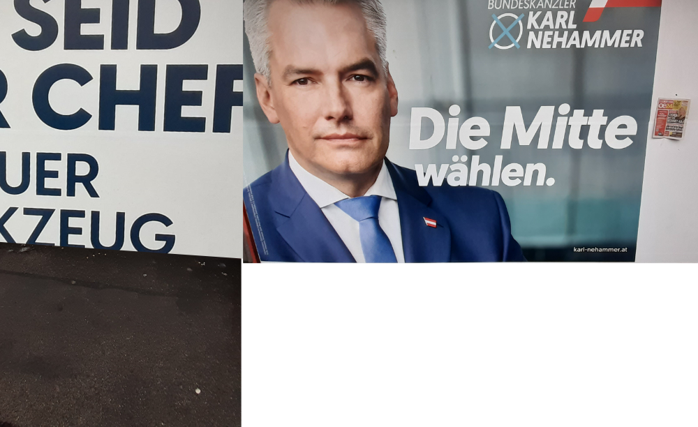 Ein Wahlkampfplakat am 3. Oktober 2024, geradeso, als stünde die Nationalratswahl in Österreich erst bevor …