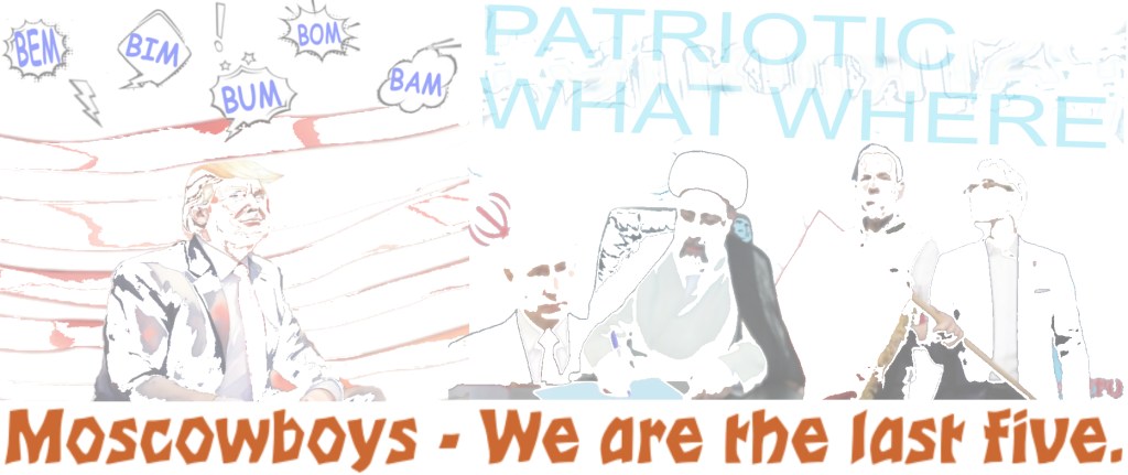 „Patriotisch, was“ — wo … Zu viel der Ehre für „Patriotinnen“, bei „Patrioten“ an Samuel Beckett zu denken, vielleicht aber deshalb, weil sie nicht politisch, hingegen Beckett auch mit „What Where“, auch mit „Catastrophe“ … vielleicht aber deshalb, um die Moscowboys nicht namenlos zu lassen: Bam, Bom, Bim, Bem, Bum.