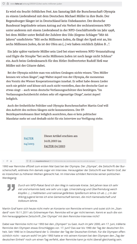 Was aber von der Bezeichnung her nicht zu verwechseln ist, ist „SS“ und „Burschenschaft“, denn „Wir schaffen die siebte Million“ ist nicht aus einem „SS-Lied“, also nicht aus der Zeit der madigen zwölf Jahre, sondern aus der Zeit nach dem Untergang des nationalsozialistischen totalitären Regimes. Mangelnde Bildung in diesem Bereich mag für die falsche Zuordnung verantwortlich sein, vielleicht auch, zusätzlich, eine gewisse eigene Mutbestätigung, im Widerstand nicht vor einer „SS“ zurückzuweichen. Denn die „Siebte-Million“-Zeile erlangte Bekanntheit durch ein „NS-Liederbuch“ der Burschenschaft Germania …