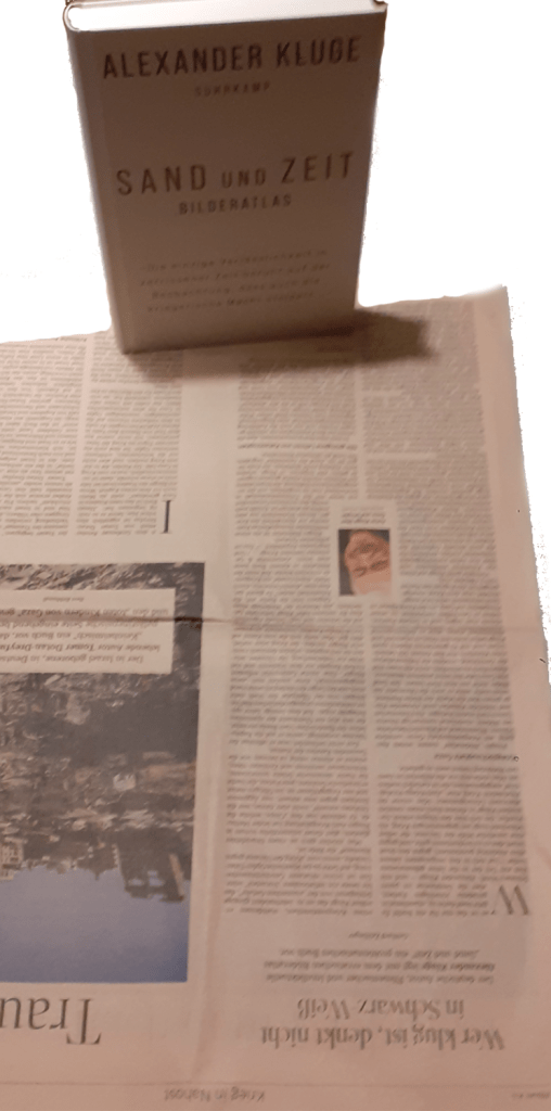 Gänzlich fern einer Fürrede für Alexander Kluge soll doch etwas aus „Sand und Zeit“ zitiert werden, ebenfalls mit Seitenzahlangabe, wie es von Gerhard Zeilinger durch seinen Artikel gelernt: