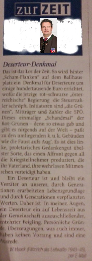 Einen ostmärkischen NS-Kriegsverbrecher läßt NR Mölzer in seiner geführten ZZ verteidigen