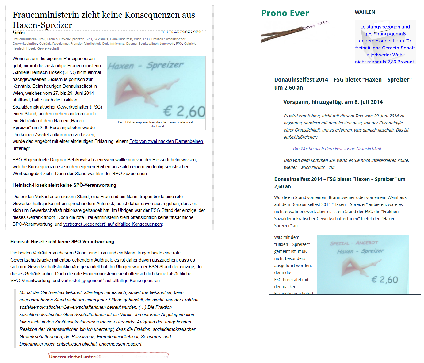 Es wurde nicht gedacht, daß noch einmal etwas zu dem Getränkepreisblatt „Haxenspreizer“ geschrieben werden muß. Aber. Wie heute gelesen werden muß, hat die identitäre Gemein-Schaft im österreichischen Parlament einen Entschließungsantrag eingebracht, über den heute, am 6. November 2014, abgestimmt werden mußte. Wie der Presseaussendung der „APA“ zu entnehmen ist: