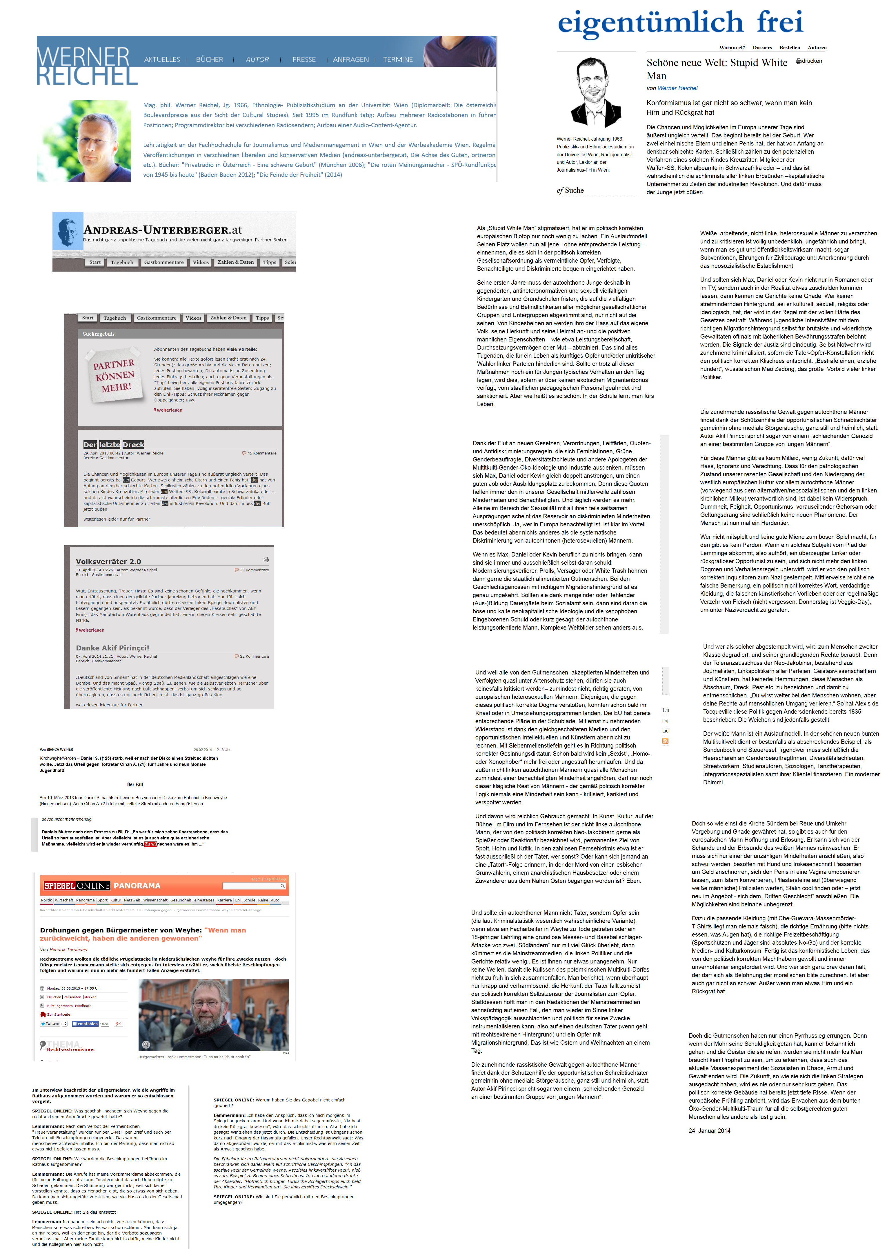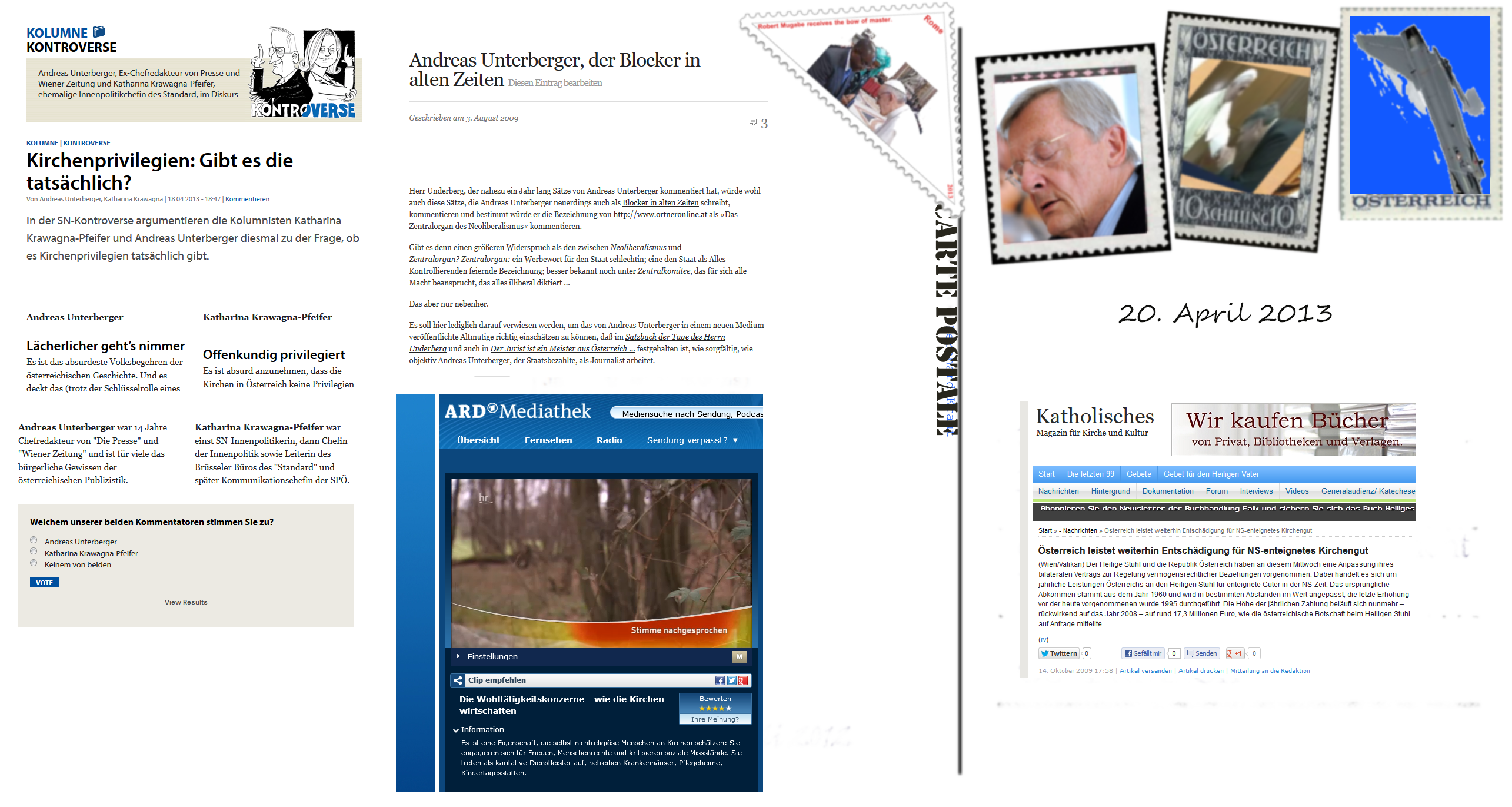 Über Andreas Unterberger muß je kein Wort mehr geschrieben werden. Andreas Unterberger ist bloß im Zusammenhang mit Österreich zu nennen. Denn. Wenn nach einer Erklärung über den Zustand, in dem sich Österreich befindet, gesucht wird, sind auch die Qualitätsmedien österreichischen Zuschnitts anzuführen, und dabei kann sein Name nicht unerwähnt bleiben. Er war Chefredakteur von den Tageszeitungen „Die Presse“, „Wiener Zeitung“ …