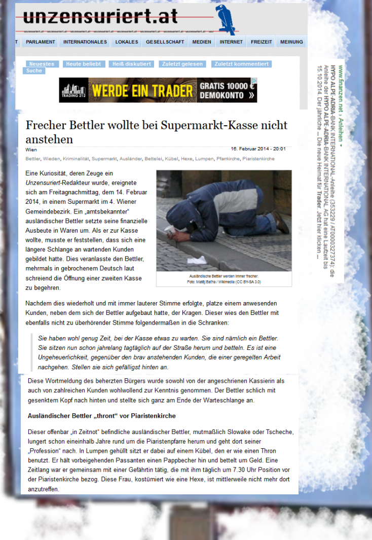 Und es geht, wie stets, gegen Menschen, die nach wie vor als „Zigeuner“ stigmatisiert sind und werden, wie auch ein Posting zum drei Jahre alten Bericht es deutlich macht.