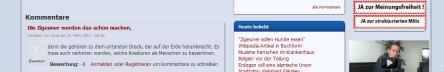 Und gibt es weitere unerwünschte Postings? Jedenfalls scheinen keine unter diesen zu sein, denn es geht in diesen ja lediglich um Essensgewohnheiten, wie gelesen werden kann. Und alle Welt spricht und schreibt gerne über Speisen. Wer will da groß über die Forderung, bestimmte Menschen nicht als Menschen bezeichnen zu dürfen, diskutieren, oder gar, sich empören. Sind Essenszubereitungen doch ein beliebtes und unschuldiges Plauderthema …