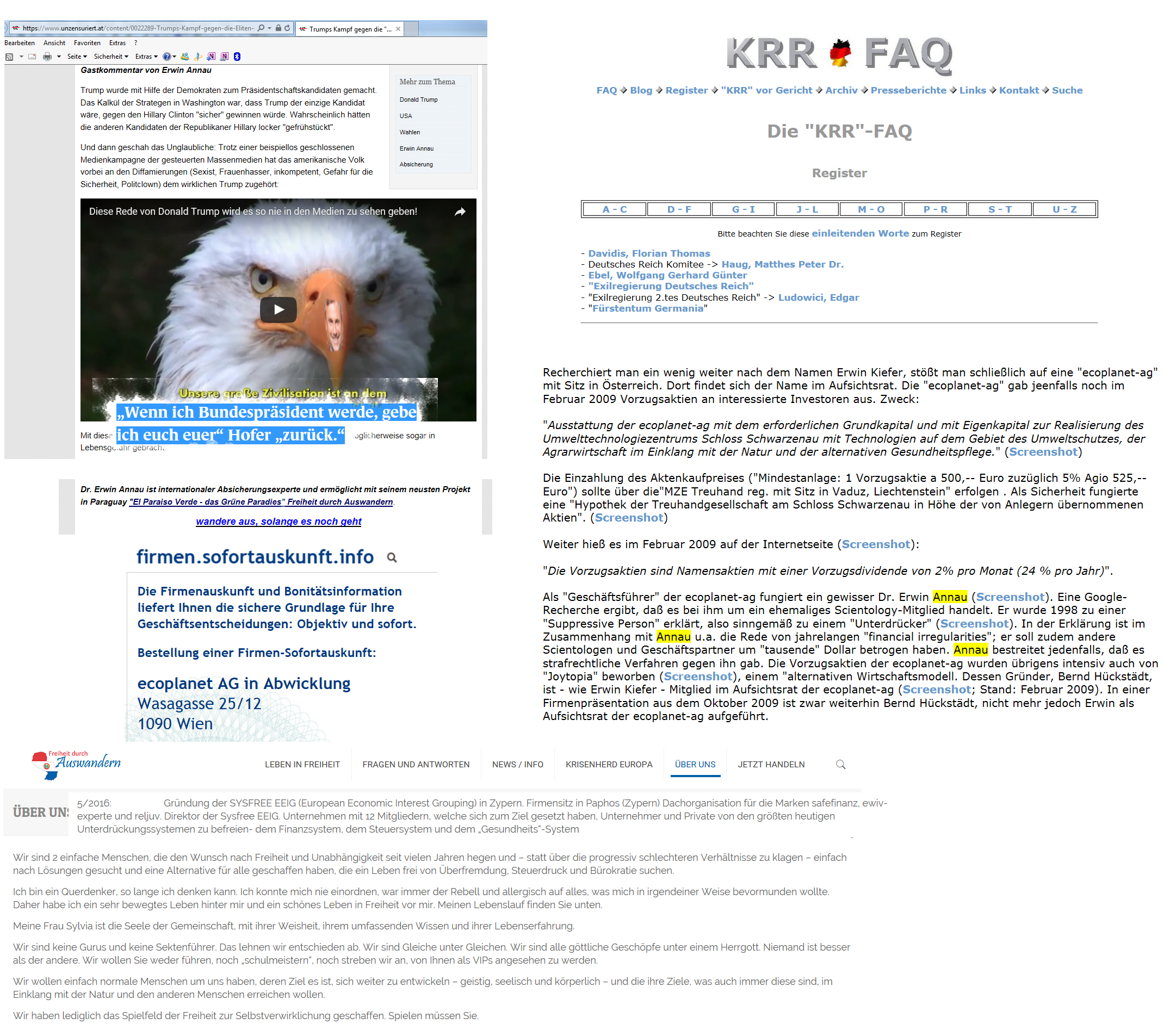 Mit diesem Vorvertrag sich weiter zu beschäftigen, ist jedoch unergiebig. Denn. Es ist schwerlich zu glauben, daß dieser Vertrag tatsächlich von RELJUV S.A. aufgesetzt wurde. Von einer Firma kann zumindest erwartet werden, daß sie ihren Namen in einem Vertrag richtig zu schreiben weiß. Obgleich, wie in einer Collage gelesen werden kann, wenn es um Verjüngung geht, Annau selbst … Wie in der Collage gelesen werden kann, wird sogar der Firmenname falsch geschrieben. Es scheint, daß sich wer einen Scherz erlaubt hat, und diesen Vertrag erfunden hat. Aus einem hehren Zweck, wenn auch mit einem unlauterem Mittel: zur Warnung. Denn. Wenn alles berücksichtigt wird, was von Erwin Annau es selbst an Auskünften über El Paraiso Verde gibt, verbreitet wird, gibt dieser Vorvertrag, von wem auch immer verfaßt, eine Ahnung davon, was einen Menschen erwartet, der sich darauf einläßt. Und das ist eine Zukunft, die sich kein Mensch wünschen kann. Wie es um die Wahrheit dieses Vorvertrages also wirklich bestellt ist, können nur Menschen beantworten, die tatsächlich bereits einen Vorvertrag direkt von RELJUV S.A. erhalten haben. Und wenn dieser direkt erhaltene Vertrag auch nur annähernd diesem gleicht, muß tollkühn genug sein sein, diesen je zu unterschreiben.