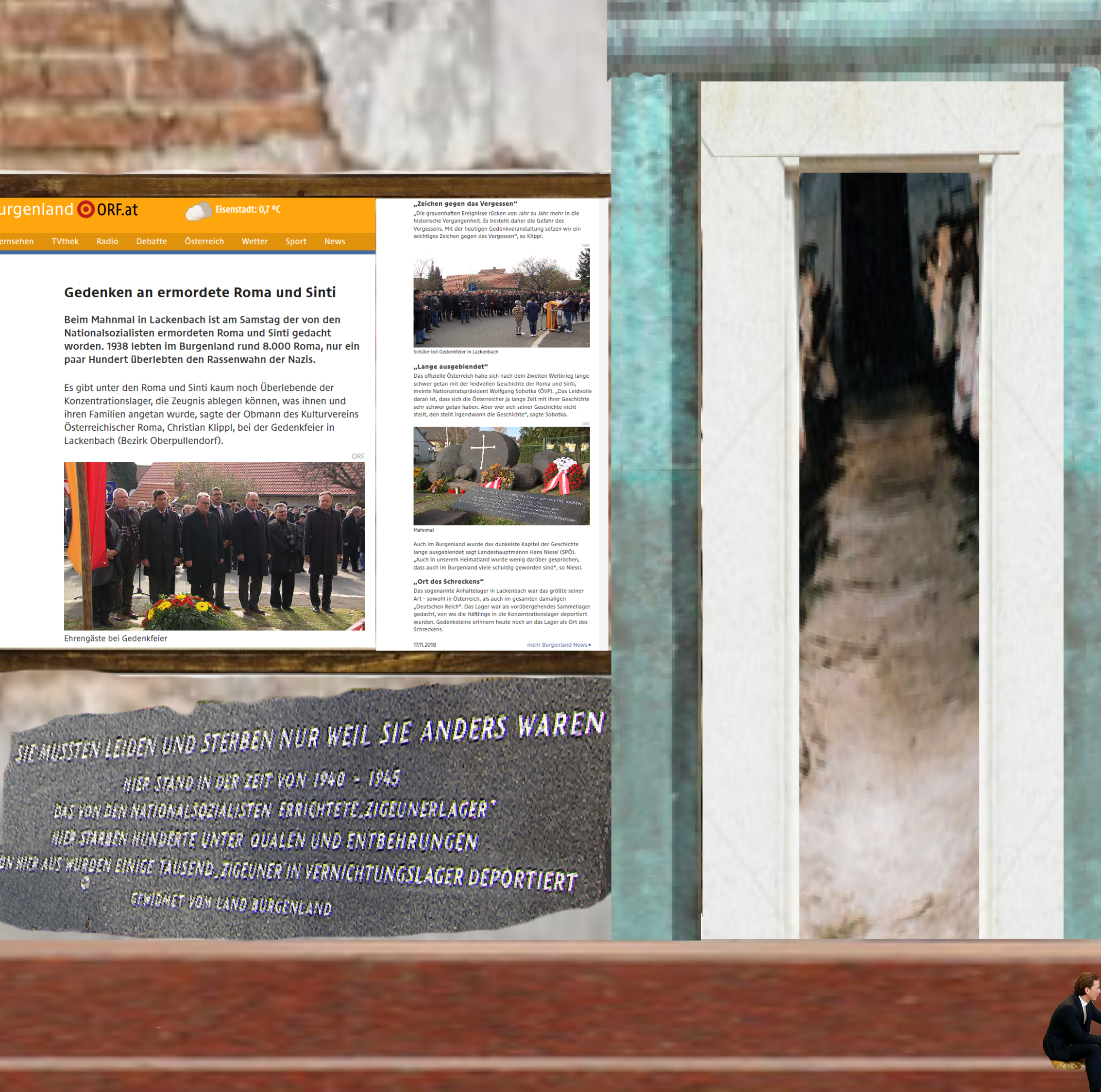 Das Land Burgenland, das diese Inschrift widmete, wird es sich wohl hoch anrechnen, diese Inschrift bei einer talentierten Verfasserin in Auftrag gegeben zu haben. Was für ein talentierter Einsatz der Anführungszeichen: „Zigeunerlager“ … „Zigeuner“ … ob es für „Zigeuner“ noch andere Namen gibt?