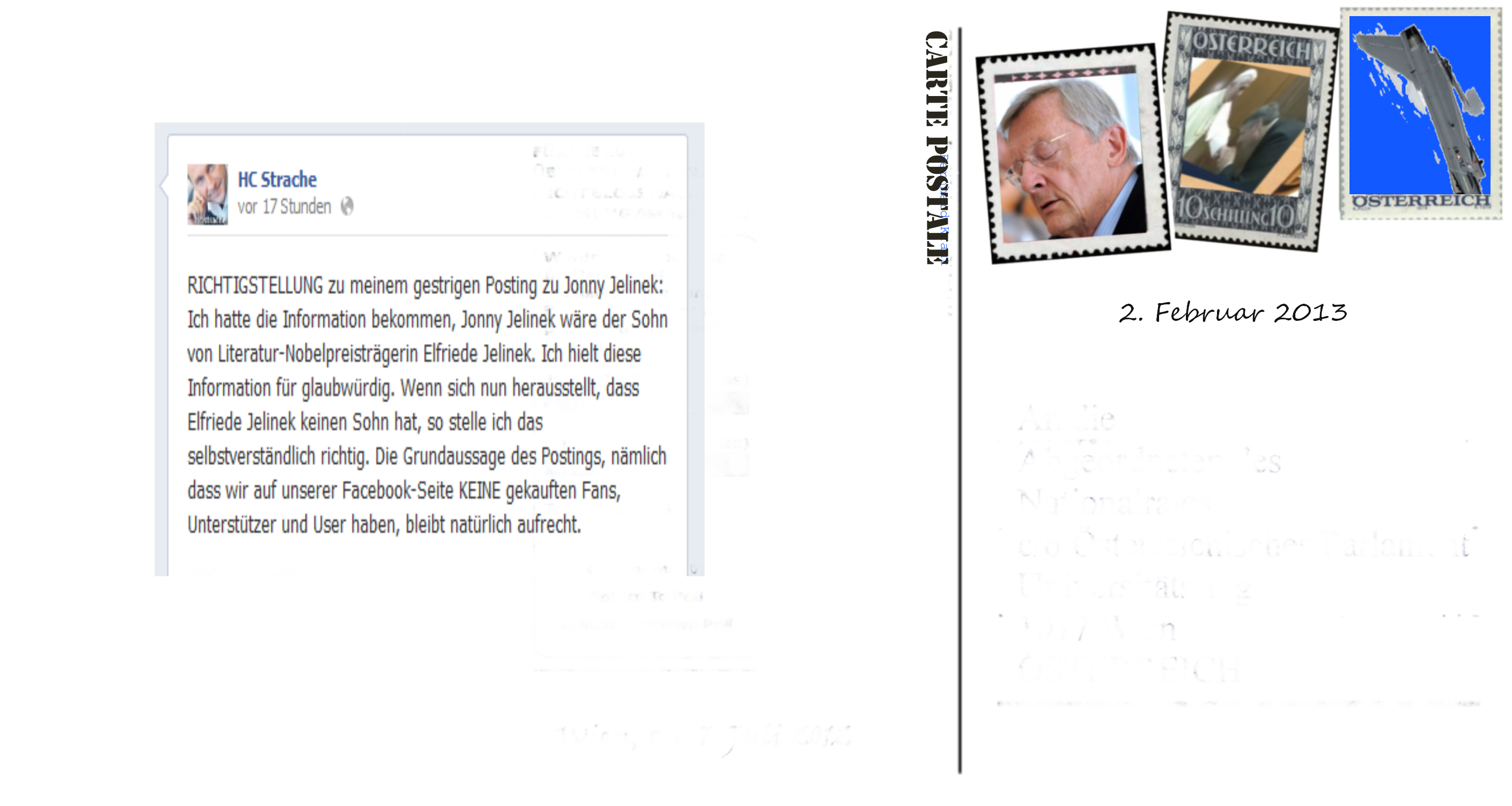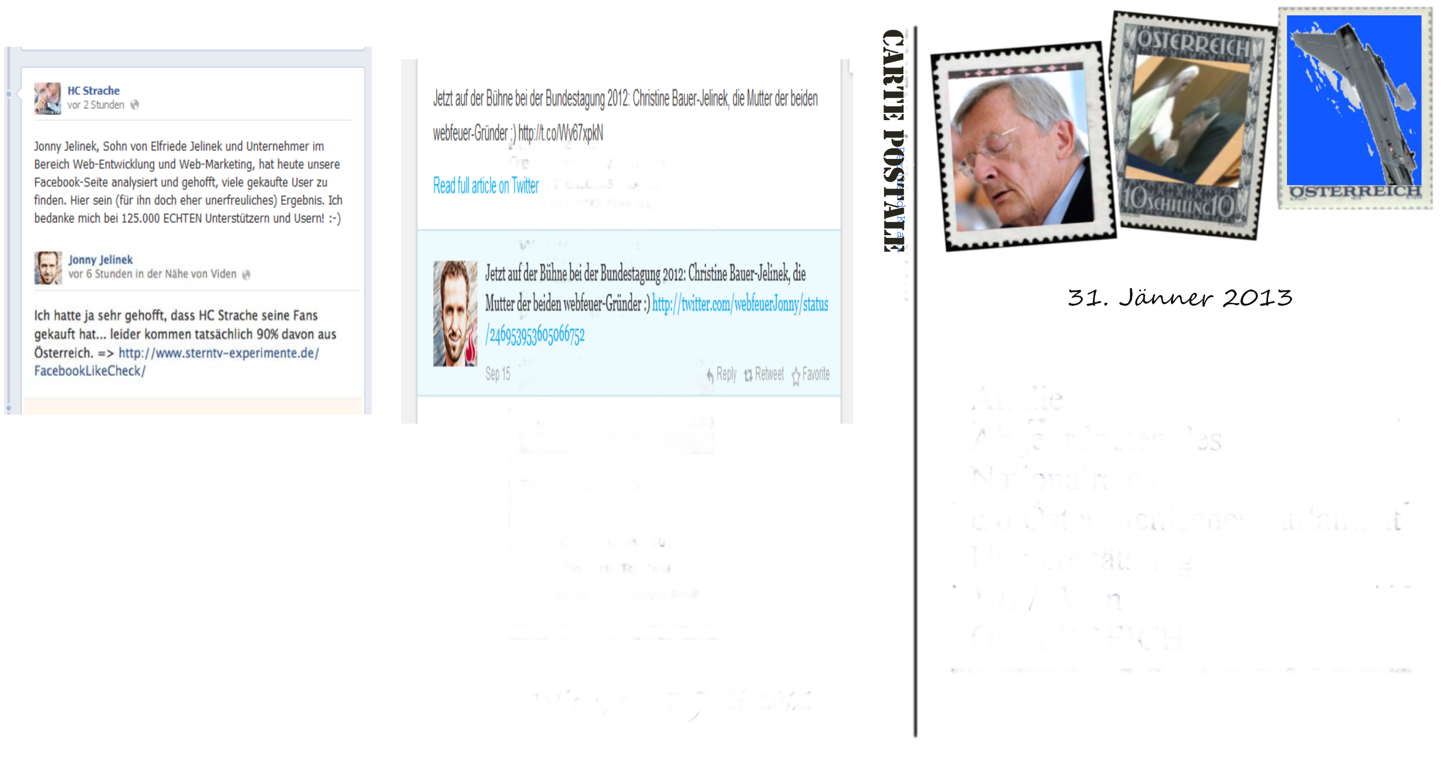NNS Welchen Wert die Aussagen von einem Freiheitlichen besitzen, können Sie ebenfalls der Collage auf der carte postale entnehmen … An einem Tag der letzten Woche wolle der zurzeitige freiheitliche Obmann auf „positive Themen“ setzen, an einem anderen Tag der letzten Woche auf … Ein verantwortungsvoll ausgeübtes öffentliches Amt verlangt nicht nur rechnerische Kompetenzen, sondern auch Sprachkompetenz, die Fähigkeit beispielsweise unterscheiden zu können, was ist positiv, was ist negativ … Aber auch dabei können Sie dem Freiheitlichen helfen, sich nie mehr in einem politischen Amt etwa mit sprachlichen Schwierigkeiten plagen zu müssen …