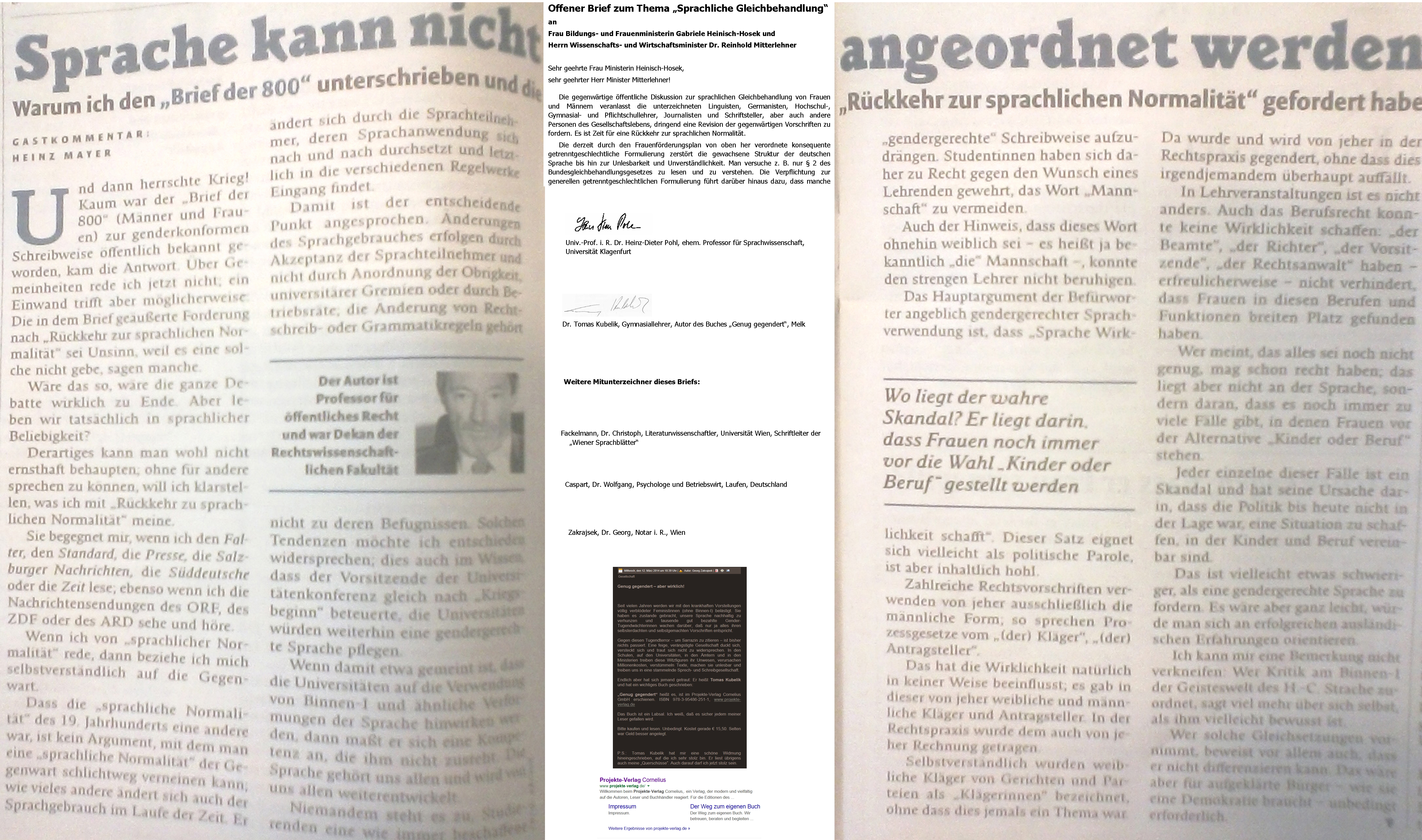 Das war bloß eine Auswahl. Mehr noch gibt es zu den Schreibern und Unterzeichnerinnen dieses Brief zu erfahren unter „Reaktionärer Backlash„, auch darüber, welche Gutachten Heinz Mayer sonst …