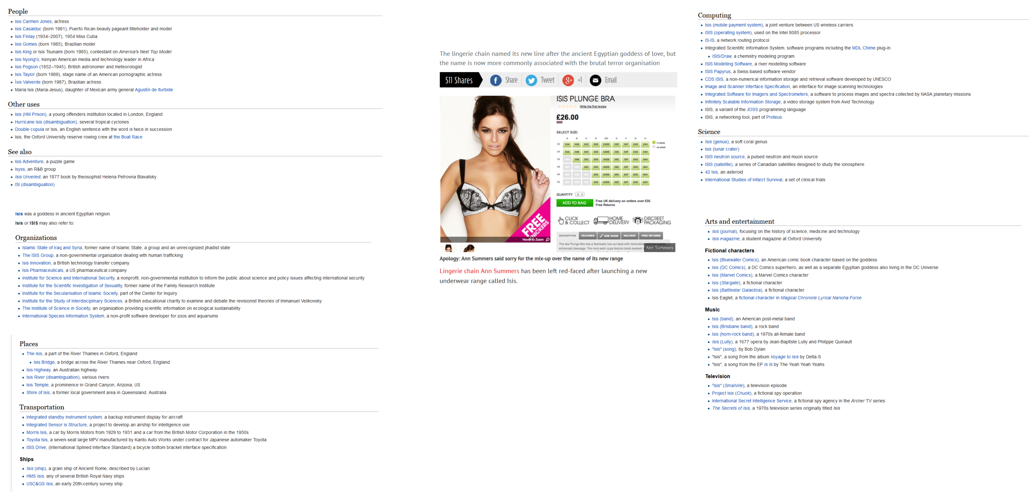 ¹ It is not only forgotten; people and companies are open to accusation for even mentioning ISIS. But when the whole matter of ISIS is gone, one entry might yet possibly remain: For a