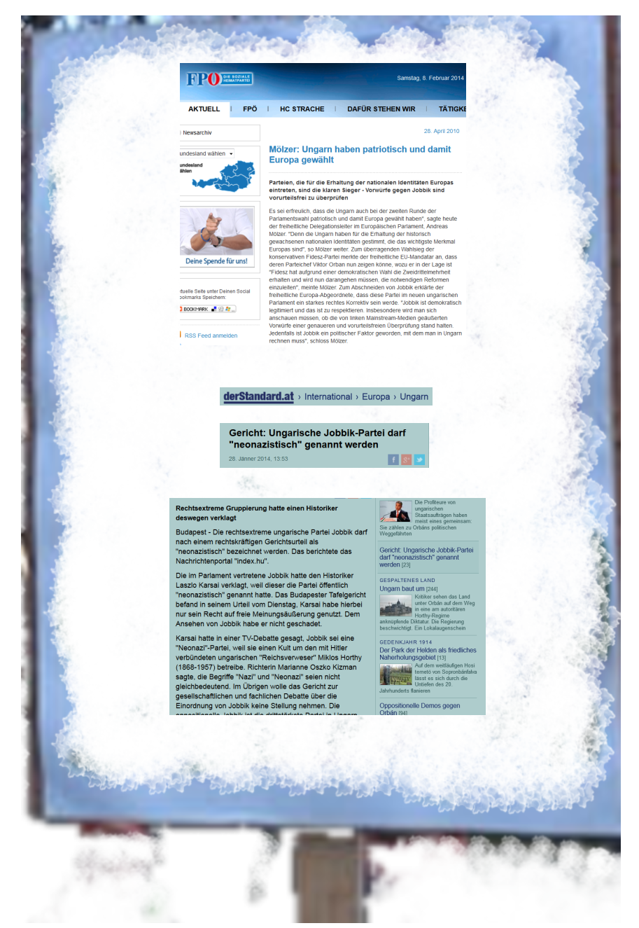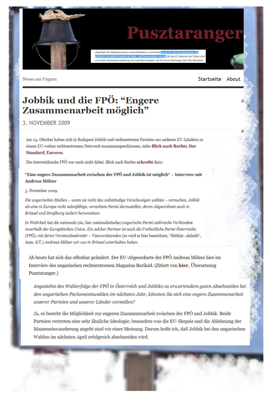 Einen langen Gesinnungsweg beschreiten nun schon FPÖ und Jobbik gemeinsam, mit vielen Stationen. Eine war beispielsweise, als Mölzer, nicht Wendelin Mölzer, sondern Andreas Mölzer für die FPÖ unzensuriert …