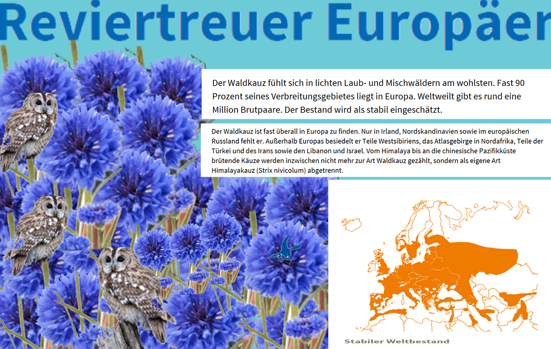 Übrigens, die Patin für „Waldkauz Isolde“ ist, wie in der Collage gelesen werden kann, Janine Nöst. Nicht ihr Verein „Hilfswerk Österreich …“ ist angeführt als Pate, sondern Janine Nöst ist als Patin angeführt … um die Logik hinter dem Ganzen verstehen zu können, dafür gibt es nur eine Chance, Waldkauz Isolde oder eine Kornblume zu sein …