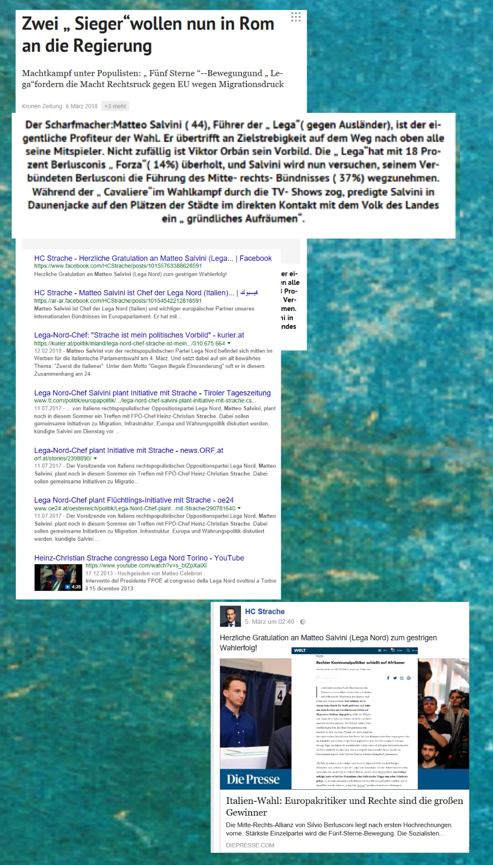 Für Matteo Salvini von der Lega ist He.-Chr. Strache, die gesamte FPÖ Vorbild. Und es wird die Lega mit Stolz und Ehre erfüllen, nicht von weitem Strache und FPÖ bewundern zu dürfen, sondern verbunden zur Zusammenarbeit …
