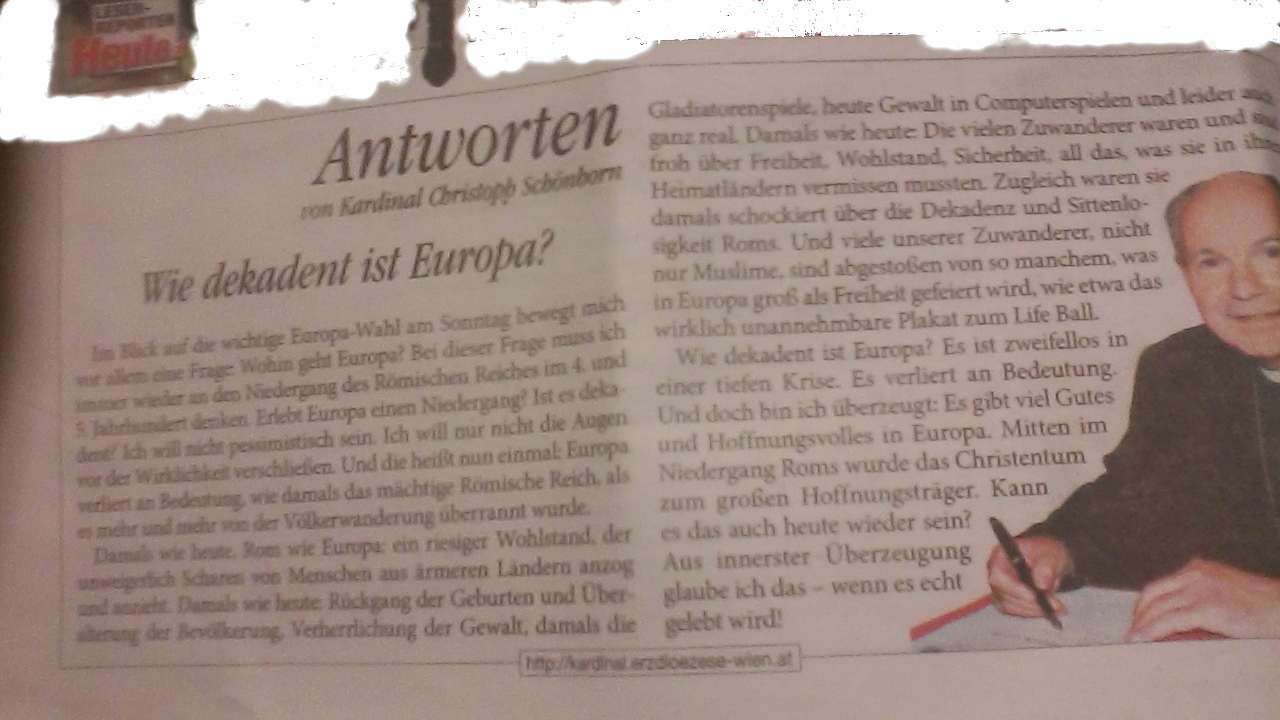 Sie werden sich vielleicht an sein Gesicht vor wenigen Jahren, im Höhepunkt seiner gehabten großen Zeit, erinnern, an dieses junge und frische Gesicht. Und nun, am 12. Mai 2017 auf dem Rathausplatz, ein Gesicht, das ahnen läßt, wie es mit ihm weitergeht, im Niedergang, ein Gesicht mit den Spuren des Aufgedunsenen, des Verbrauchten, des Aufgeplusterten. Dieses Gesicht der Menschen, die einmal eine große Zeit hatten, und es fortan, lange nach ihrer großen Zeit, nicht lassen können, von dieser einmal gehabten großen Zeit, die unentwegt von dieser lange zurückliegenden Zeit erzählen müssen, immerzu, immerzu das Schlüpfrige, immerzu das Billige, immerzu das Hohle, als gäbe ihr Leben sonst nichts her, als diese einmal gehabte große Zeit eines Augenblicks auf immer einzufrieren, immerzu als Eiswürfel aus dem Kühlschrank zu holen und vor jedwedem Publikum zu lutschen, bis an das Ende ihrer Tage damit als Tingeltangel …