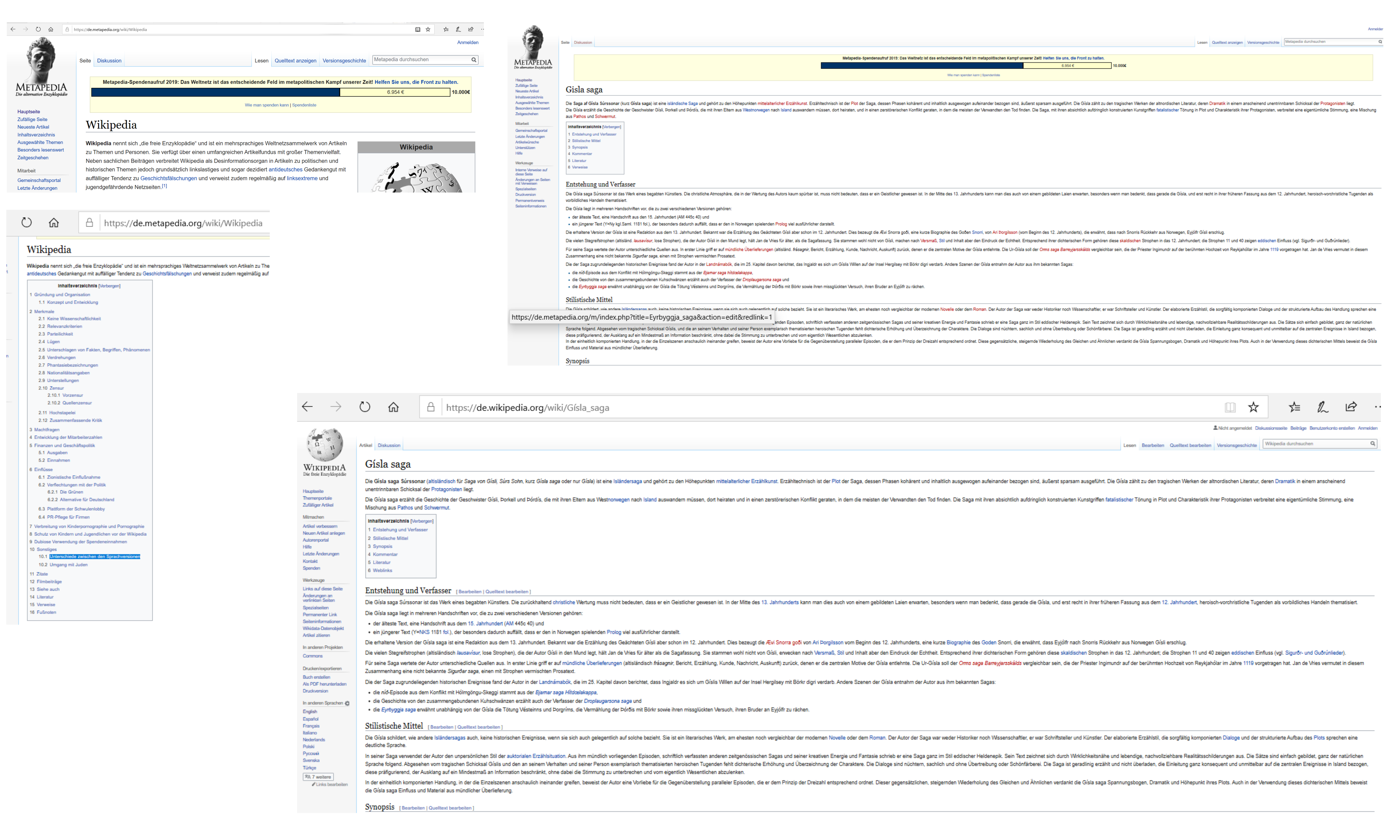 Es kann aber auch umgekehrt sein, auf Metapedia die letzte Bearbeitung, wie angegeben wird, 15. September 08, auf Wikipedia die letzte Aktualisierung, wie angegeben wird, am 29. April 2019. Wer nun wirklich die Abschreiberin ist, so oder so, heiter bleibt es allemal. Oder es schreibt wer zugleich für Metapedia und für Wikipedia dasselbe – auch sehr heiter.
