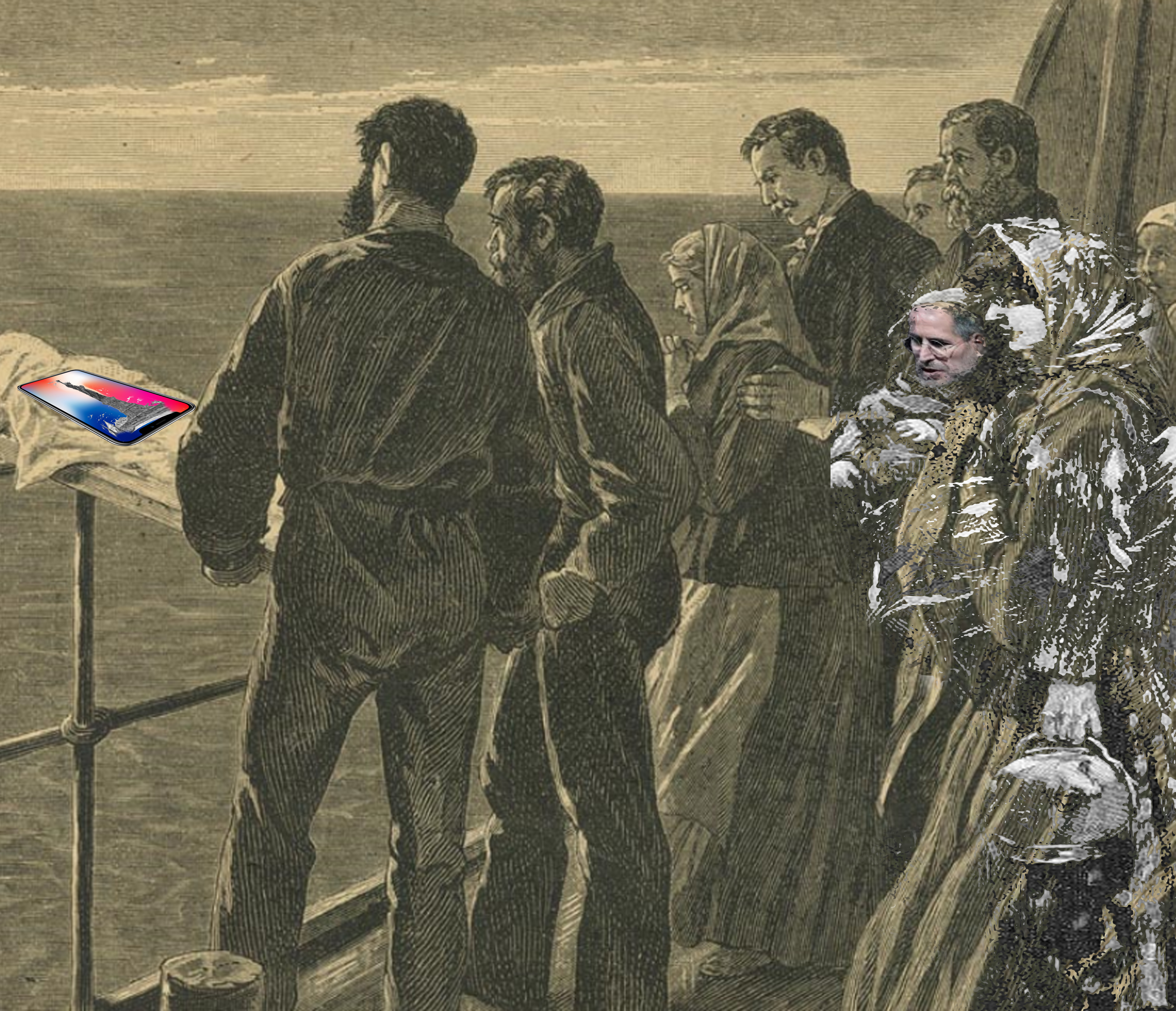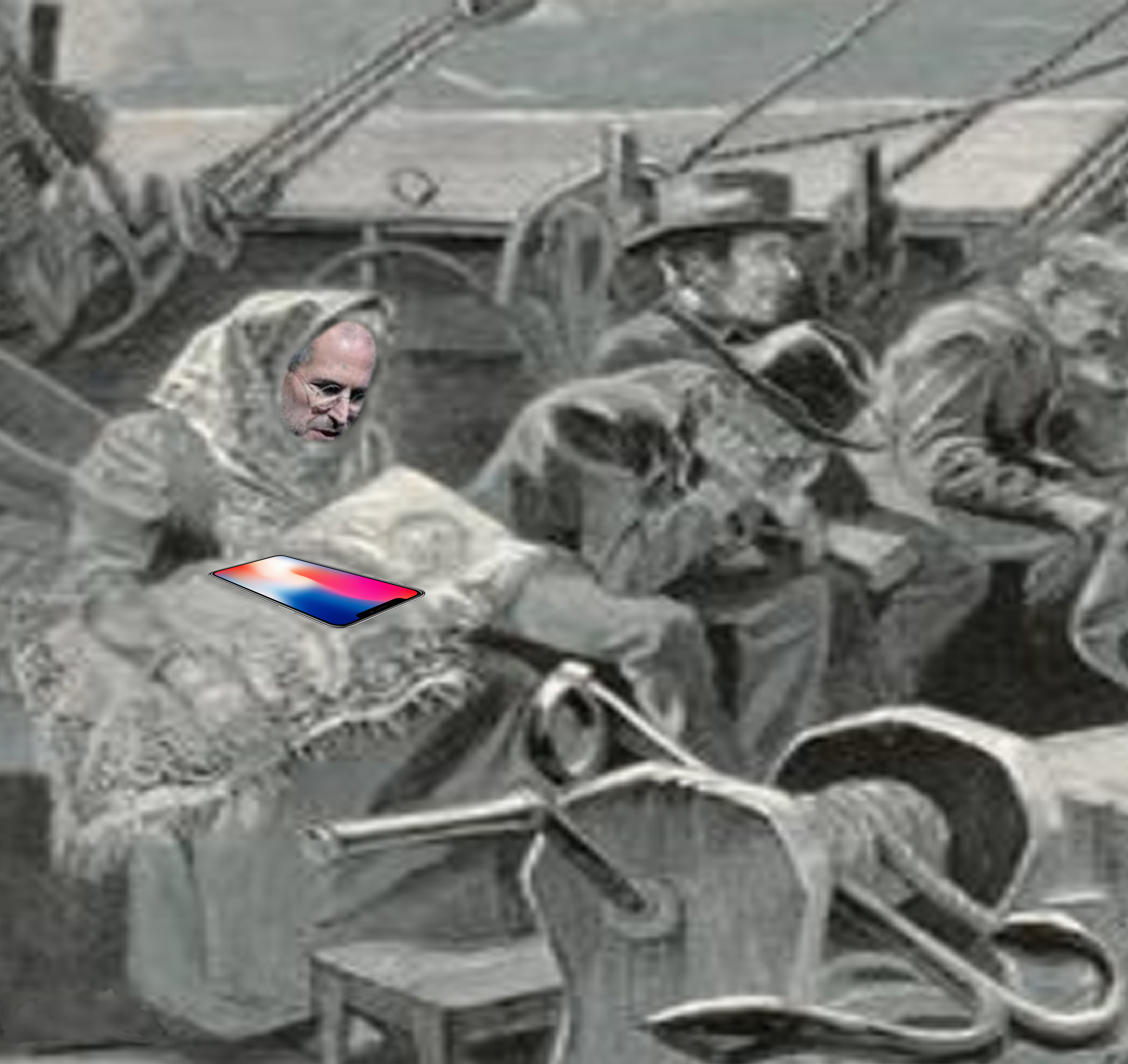 Banksy hebt den Vater von Steve Jobs hervor. Dieser kam tatsächlich aus Syrien. Nicht erwähnt wird die Mutter von Steve Jobs. Eine Frau, wie gelesen werden kann, von deutscher und schweizer Abstammung. Das heißt, irgendwann sind ihre Vorfahren in die Vereinigten Staaten eingewandert. Ob die Vorfahren von Steve Jobs nun mütterlicherseits den Namen Ziegler, der an die Schweiz denken läßt, und väterlicherseits den Namen Schieble, die aus Deutschland kamen, trugen oder umgekehrt, das wurde nicht recherchiert. Es ist auch unerheblich.