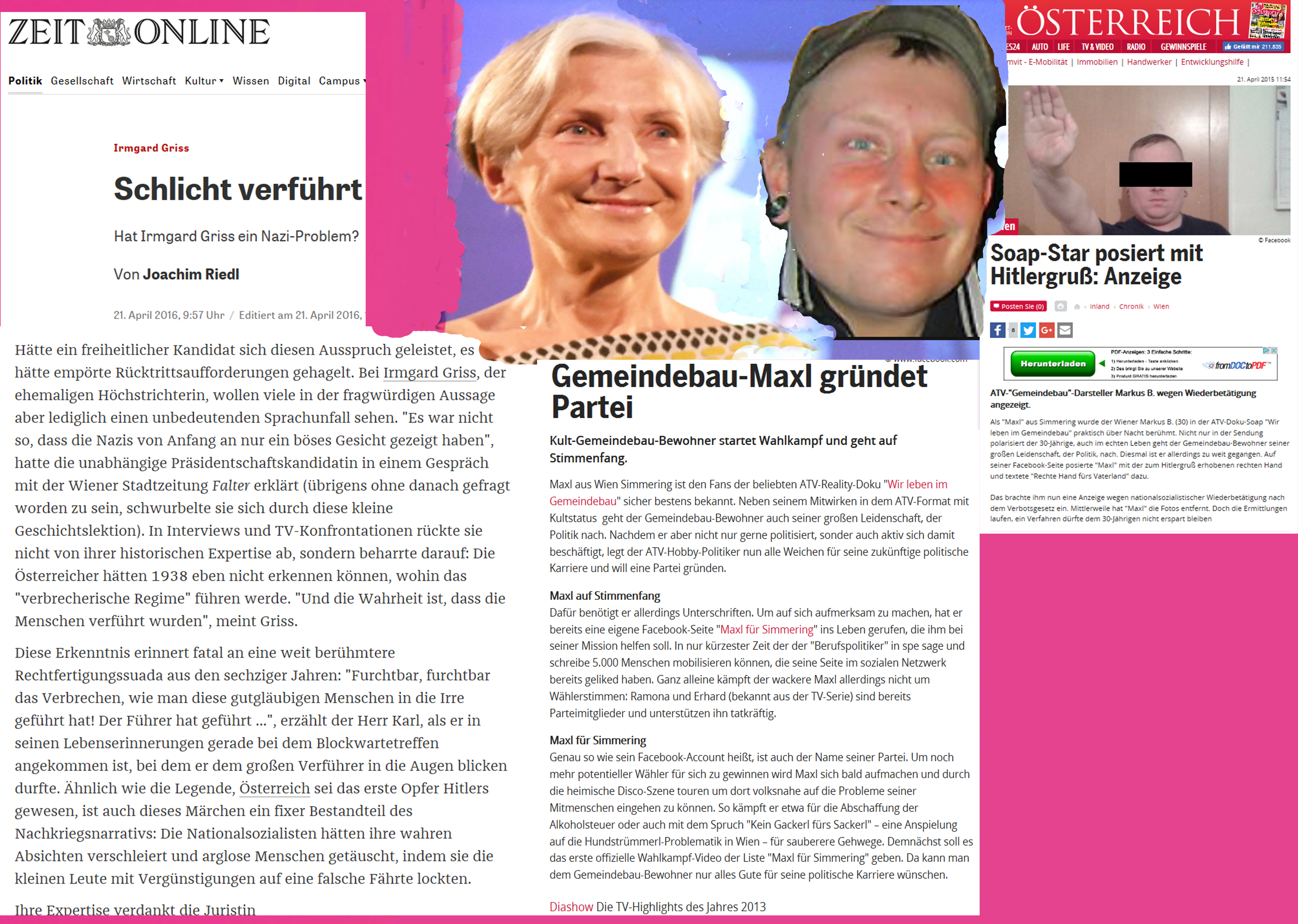Es seien den Freiheitlichen ihre Brücken gegönnt, niemand wird den Freiheitlichen ihre Träume zum Vorwurf machen können oder wollen, wer wird abschätzig reden wollen, beispielsweise darüber, in welchem Deutschland Götz Kubitschek, Oberleutnant der Reserve, leben möchte, wie er stotternd vorträgt, „das ist das Land, in dem die Deutschen leben“ … Wer wird der Frau auf dem Rittergut widersprechen wollen, wenn sie sagt: „Wir sind rechts, ich bin rechts.“? Oder dem Oberleutnant der Reserve, wenn er sagt: „Wir sind sehr sehr konservativ, wir sind Rechtsintellektuelle …“ Konservativ – ein Fertigbauteilpfeiler, den Michael Spindelgger schon gut verwenden könnte, um eine Brücke zu den Freiheitlichen zu bauen, für eine gemeinsame Regierung … Es sind ja bloß Konservative, wie eben Christschwarze auch Konservative sind, und darüber hinaus stehen doch beide, Freiheitliche und Christschwarze, geeint auf der ebenfalls schon gebauten christlichen Nächstenliebetraditionsbrücke …