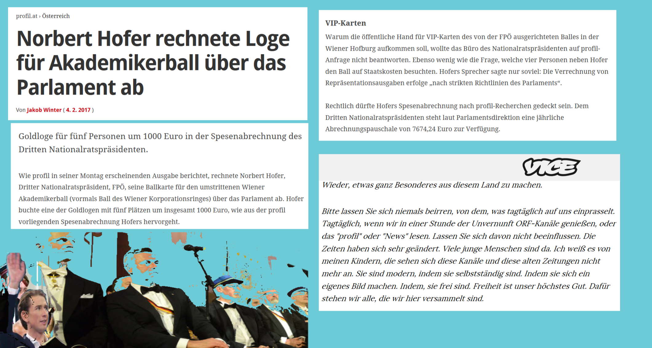 Es heißt in einem Lied, das in diesem Gesinnungsbunde nicht nur recht gekannt wird, sondern wohl das gesamte Lied auswendig zu singen recht leicht fallen wird, „er ging an meiner Seite“ – der „Kamerad“ … und dann gibt es noch einen Spruch, der besagt, „es paßt kein Blatt zwischen uns“. FPÖ unzensuriert bringt das am 16. Dezember 2017 recht kenntlich zum Ausdruck, wie es kenntlicher nicht zum Ausdruck gebracht werden kann. Das Gehen Seite an Seite und es paßt kein Blatt dazwischen. Es kann auch kein Blatt dazwischen passen. Denn. Es ist alles auf einem Blatt, alles auf einer Seite: die Präsentation des Regierungsprogrammes der Malý-Strachu-Vláda und die Reklame für die „Verteidiger Europas“ …