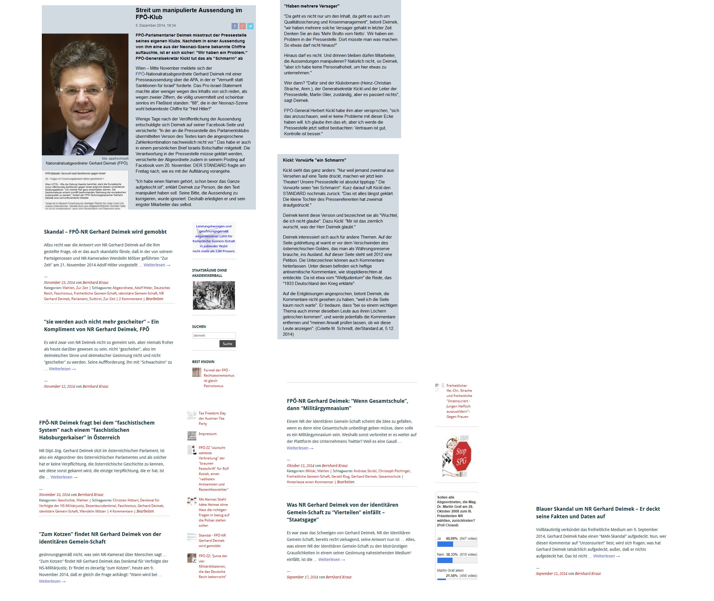 „Auf die Entgleisungen angesprochen, betont Deimek, die Kommentare nicht gesehen zu haben, ‚weil ich die Seite kaum noch warte‘. Er bedaure, dass ‚bei so einem wichtigen Thema auch immer dieselben Leute aus ihren Löchern gekrochen kommen‘, und werde jedenfalls die Kommentare entfernen und ‚meinen Anwalt prüfen lassen, ob wir diese Leute anzeigen‘.“