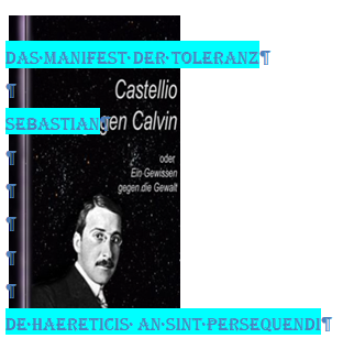 Die Aktivjahre der Toleranz hätten aber schon 2015 ausgerufen werden müssen, zum Anlaß der fünfhundertesten Wiederkehr des Geburtstages von Sebastian Castellio, des Menschen also, der vor 465 Jahren das „Manifest der Toleranz“ schrieb … Das wäre, nein das ist ein Jubiläum, würdig zu begehen: