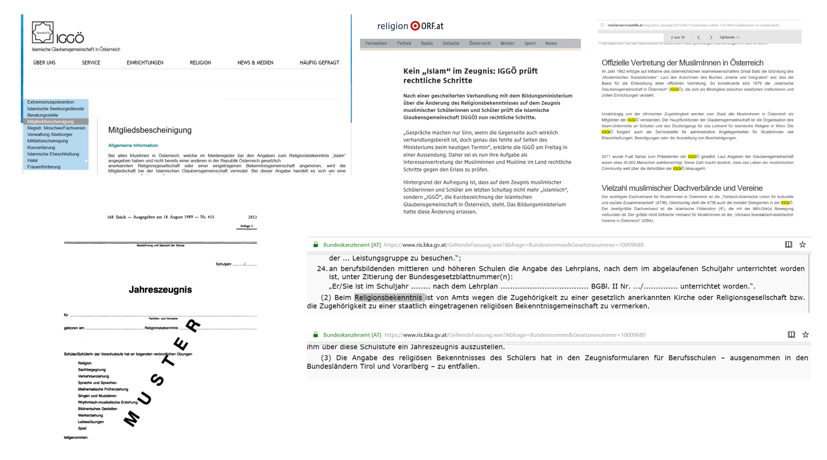 „Hintergrund der Aufregung ist, dass auf dem Zeugnis muslimischer Schülerinnen und Schüler am letzten Schultag nicht mehr ‚islamisch‘, sondern ‚IGGÖ‘, die Kurzbezeichnung der Islamischen Glaubensgemeinschaft in Österreich, steht. Das Bildungsministerium hatte diese Änderung erlassen.“