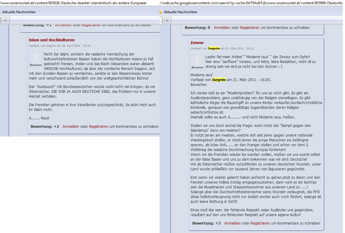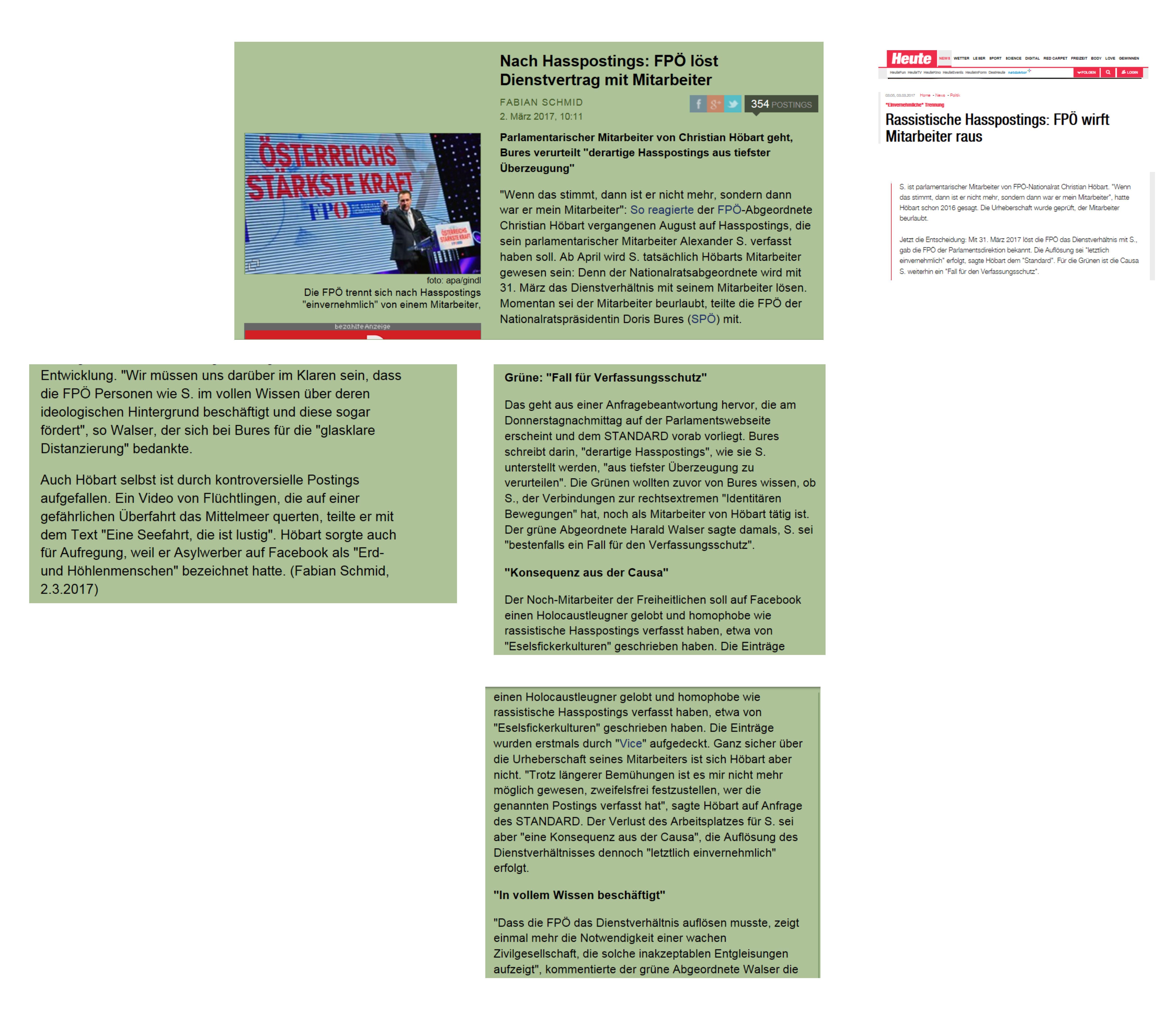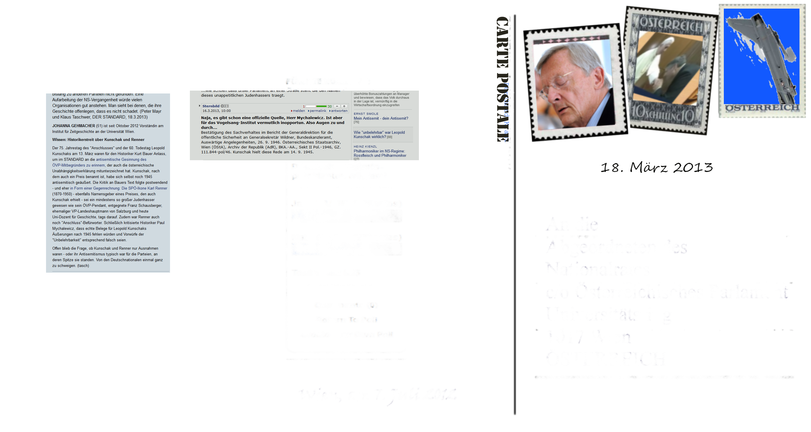 Aufmerkenswert an diesem Stück ist vor allem auch, daß zuerst irrtümlich gedacht wurde, das Stück werde vom Ensemble der „Österreich“ gespielt, hingegen war die Begleitung der Meinung, es spiele die Truppe von der anderen Umsonst, die sich „Heute“ nennt, eine Zuschauerin, die das mithörte, meinte, es sei das Ensemble der „Kronenzeitung“, dem aber widersprach ein Zuschauer heftig, der überzeugt davon war, im Arse-Theatre der „Zur Zeit“ werde … schließlich kenne er die Stücke dieser Mannschaft in- und auswendig … Es kam dann auch noch die Vermutung auf, die „Unzensuriert“ könnte das längst schon geschlossen geglaubte Arse-Theatre wieder … Schließlich mußte eingesehen und eingestanden werden, es spielt das Standard-Ensemble … Allerdings war nach der Aufführung die Begleitung nicht von ihrer Meinung abzubringen, es habe sich bei dieser Aufführung um eine Gemeinschaftsproduktion gehandelt, es müssen an diesem Stück alle mitgeschrieben und alle mitgespielt haben, denn wird an die Qualität der Tageszeitung „Der Standard“ gedacht, ist es, so die Begleitung, unmöglich, daß ausschließlich ihre Kundschaft dieses Stück geschrieben hat und spielt …