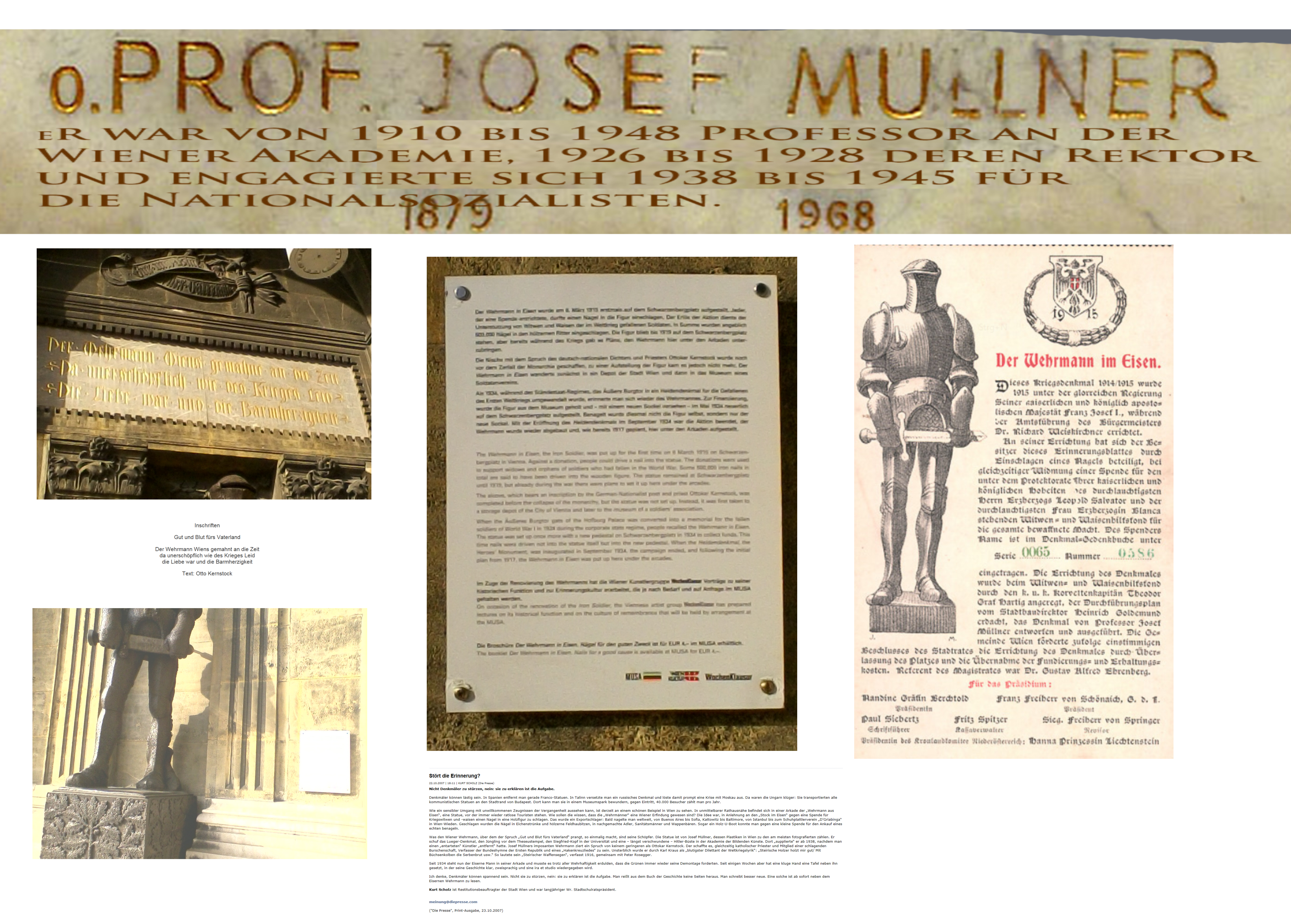 Vom Wiener Karl-Lueger-Platz bis zum Wiener Rathaus ist es nicht weit, ein wenige Minuten dauernder Spaziergang. Um zu erfahren, ob es beim „Wehrmann in Eisen“ mehr über Josef Müllner zu lesen gibt, als beim