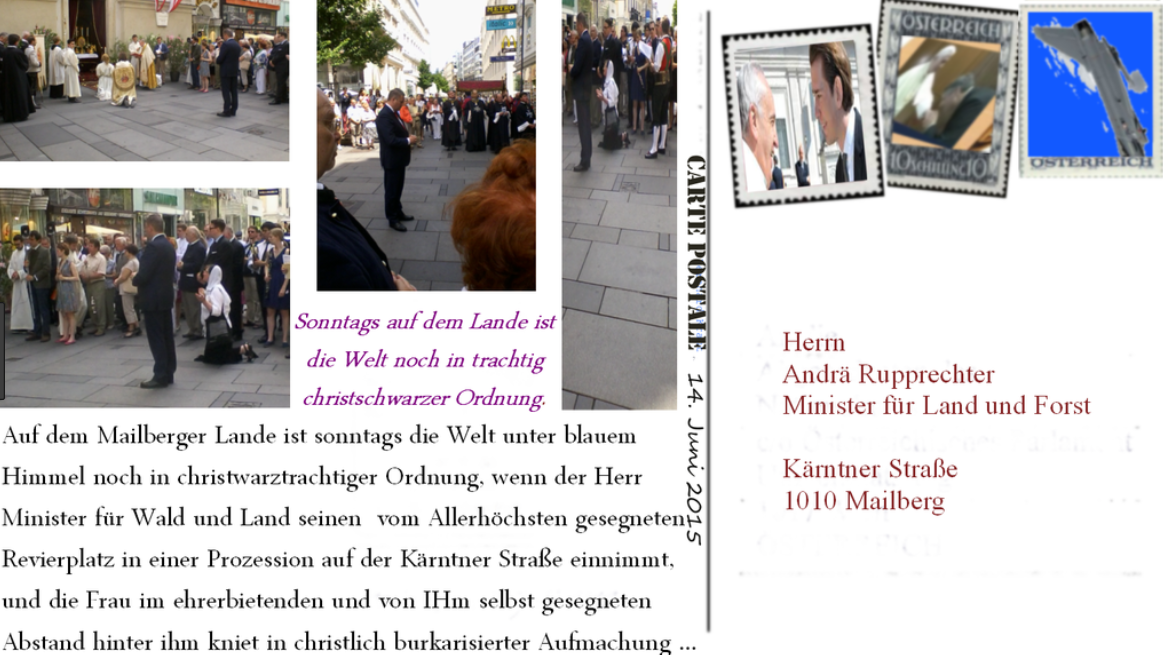Beim Lueger-Denkmal die korrekte Benennung von einem korrekten und professoralen Historiker, wer also das Denkmal geschaffen hat, mit Daten der Geburt und des Todes, wie eine Weihe, alles in Ordnung, ein harmloser und also nicht zu hinterfragender Künstler. Beim „Wehrmann“ der Name eines katholischen Dichters, der aber Jahre vor dem Naziregime, aber nicht der Name des Bildhauers, der den „Wehrmann“ schuf und während der Nazidiktatur … das könnte doch Touristen und Touristinnen abschrecken, müllnerische Werke weiterhin zu fotografieren, oder sie gar erinnern, daß Wien eine, die Nazidiktaturhauptstadt … und wenn sich das auch noch herumspräche, wer weiß, wie viele dann noch kämen, wenn ihnen dazu auch noch die Gegenwart dieses Landes einfiele … Mit ihm, Müllner, steht auch Franz Schubert auf dem Spiel, mit dem er durch seinen Forellenbrunnen … was, wenn plötzlich Menschen einfiele, Wiener Klassik nicht mehr hören zu wollen, nicht mehr in den Musikverein gehen zu wollen, wie Vladimir Jankélévitch sie nicht mehr hören konnte, als er erfuhr, daß Schubert gespielt wurde, in den Konzentrationslagern …