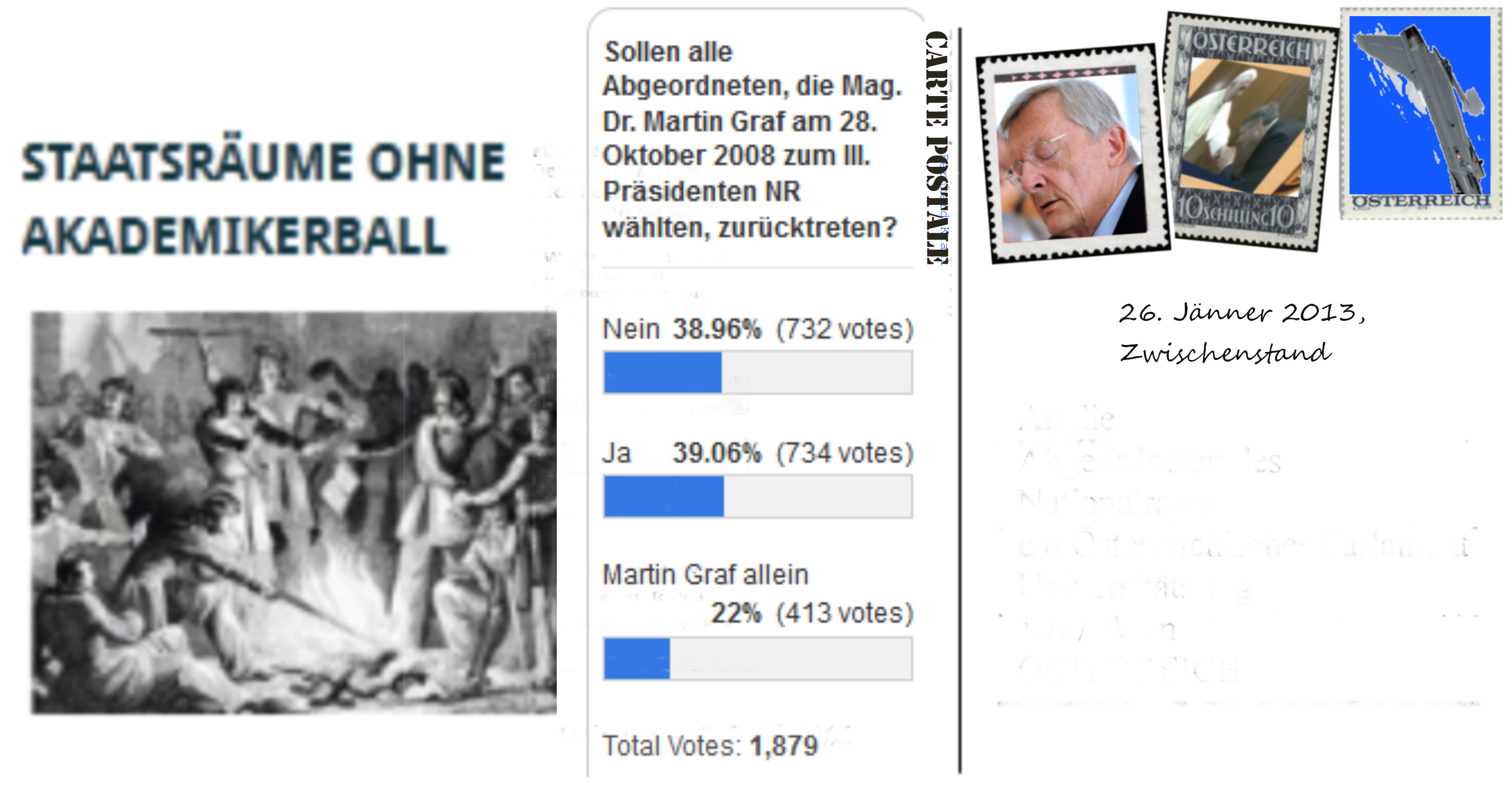 NNS Eine Frage stellt sich im Zusammenhang mit den beiden Umfragen, die mit Martin Graf verklammert sind, aber darüber morgen oder übermorgen, wenn wieder einmal Zwischenstände bekanntgegeben werden sollten. Wenn Sie sich noch an diesen beiden Umfragen beteiligt haben, sind Sie herzlich eingeladen, es noch zu tun.