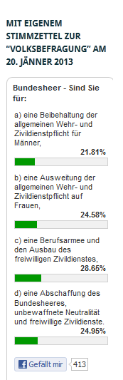 Übrigens, Bundesheer … Was ist aus den „großen Reformen“ geworden? Auch gut, ein Bild wieder vor sich zu haben, zur Erinnerung an die unselige Volksbefragung vom 20. Jänner 2013 …