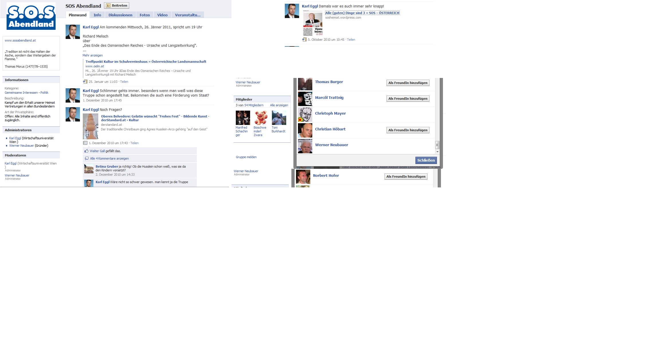 Wie viele Polizisten und möglicherweise auch Polizistinnen ihre Aufgaben über den Dienst hinaus als Freunde und möglicherweise auch als Freundinnen auf wie vielen Plattformen erfüllen, kann nicht gesagt werden, aber es darf angenommen werden, es werden nicht nur die hier Gewürdigten und nicht nur die hier genannten Plattformen sein …Bei Abertausenden aktiven und pensionierten Polizisten und Polizistinnen könnte aber, statistisch betrachtet, eine erkleckliche Prozentzahl … Wie viele auf wie vielen Plattformen es tatsächlich sind, das herauszufinden, ist eine Aufgabe für IM Johanna Mikl-Leitner, um dann alle vor den Vorhang zu bitten, ihnen dafür zu danken, daß es in Österreich durch ihre Freundschaftsermittlungen keinen Anders Behrend Breivik gibt, daß sie es durch investigation with friends sogar verhindern, überhaupt annehmen zu können, sogar für nur einen Augenblick, daß in Österreich Anders …