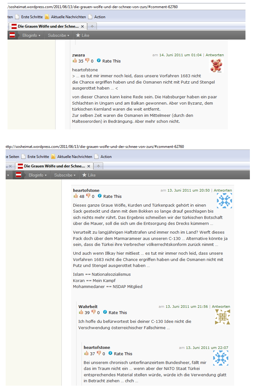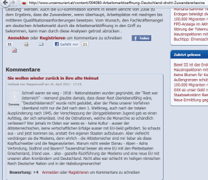 Für einen Moment soll angenommen werden, Anders Behrend Breivik ist ein Österreicher, und weiter, Anders Behrend Breivik ist als Österreicher ebenso hochaktiv im Internet, als der Norweger Anders Behrend Breivik es war, ehe er sich selbst und ganz allein, wie es nun praktisch verknappt heißt, zum siebenundsiebzigfachen Mörder radikalisierte, dem Einzelwahn erlag. Dann darf weiter angenommen werden, für Anders Behrend Breivik ist es verlockend und in Österreich attraktiv, sich in die Schreibstaffel der Sos Österreich oder von Unzensuriert einzureihen, oder auf weiteren Plattformen, auf denen fleißig gerührt wird, was auch Anders Behrend Breivik u.v.a.m. in sein Man… Nur, in Österreich, würde der Polizist Werner Herbert, ein Freund beispielsweise von Dan Weber, sofort reagieren, würde sofort entsprechende Dienststellen darauf aufmerksam machen, da sei einer, der schreibe, wie einer, der in absehbarer Zeit …