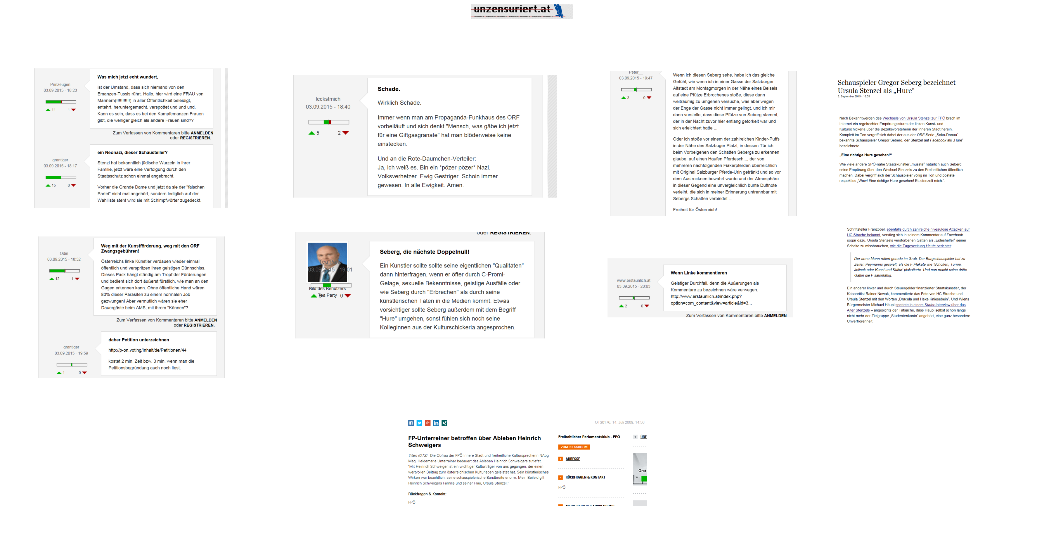 PS Erwartungsgemäß weidet FPÖ-Unzensuriert die unseligen Aussagen der Sebergs sofort aus und kann mit den Sebergs die berechtigten Kritiken am Wechsel von Ursula Stenzel recht leicht wegreden, es wird ihr allzu einfach gemacht, den Wechsel als etwas Tolles zu verkaufen, zu verteidigen, zu zeigen, es gäbe keine wirklichen Argumente gegen Ursula Stenzel und FPÖ, sondern bloß „niveaulose Attacken“…